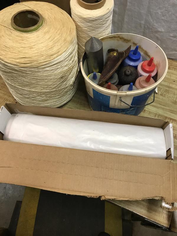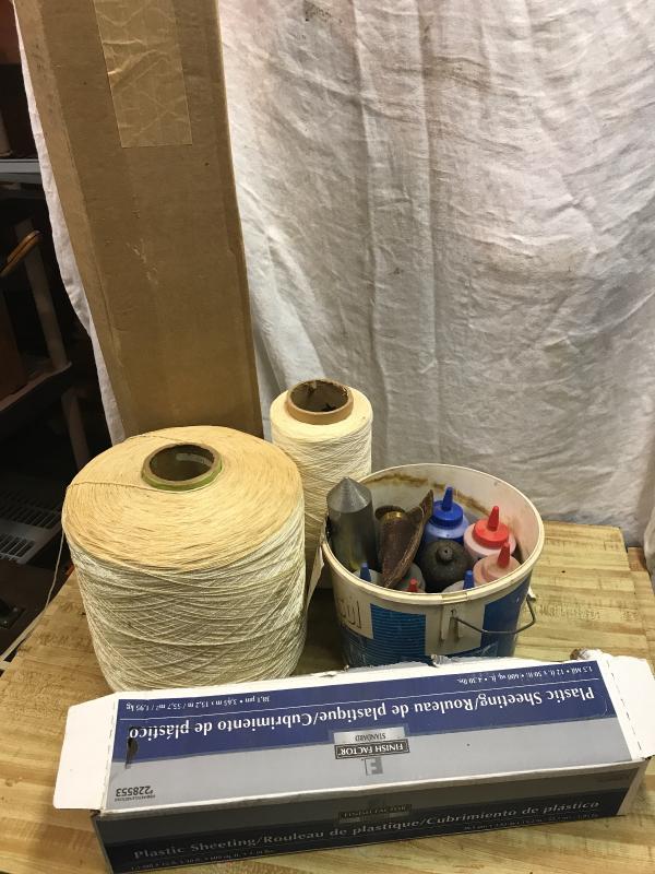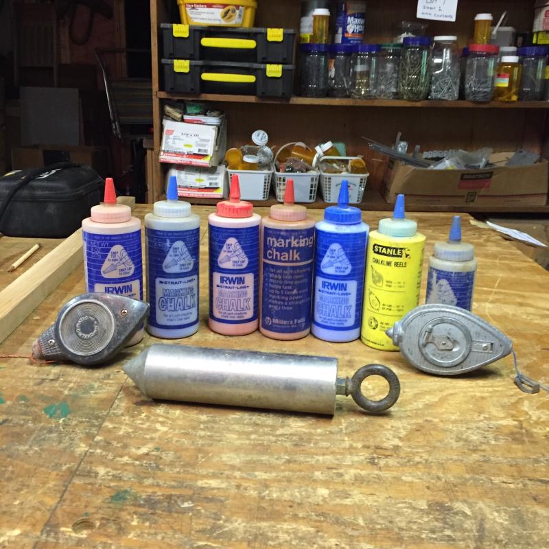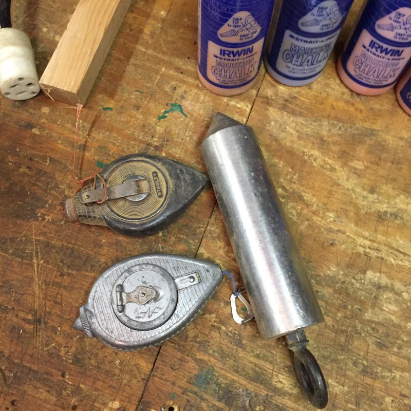 Chalk Line and Chalk with 3 Plumb Bobs, two bolts of twine and two rolls of plastic sheeting. Lot Available for Local Pickup Only in Horseshoe, NC.