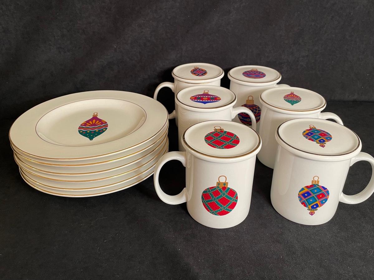 Set of 6 dessert plates with covered mugs