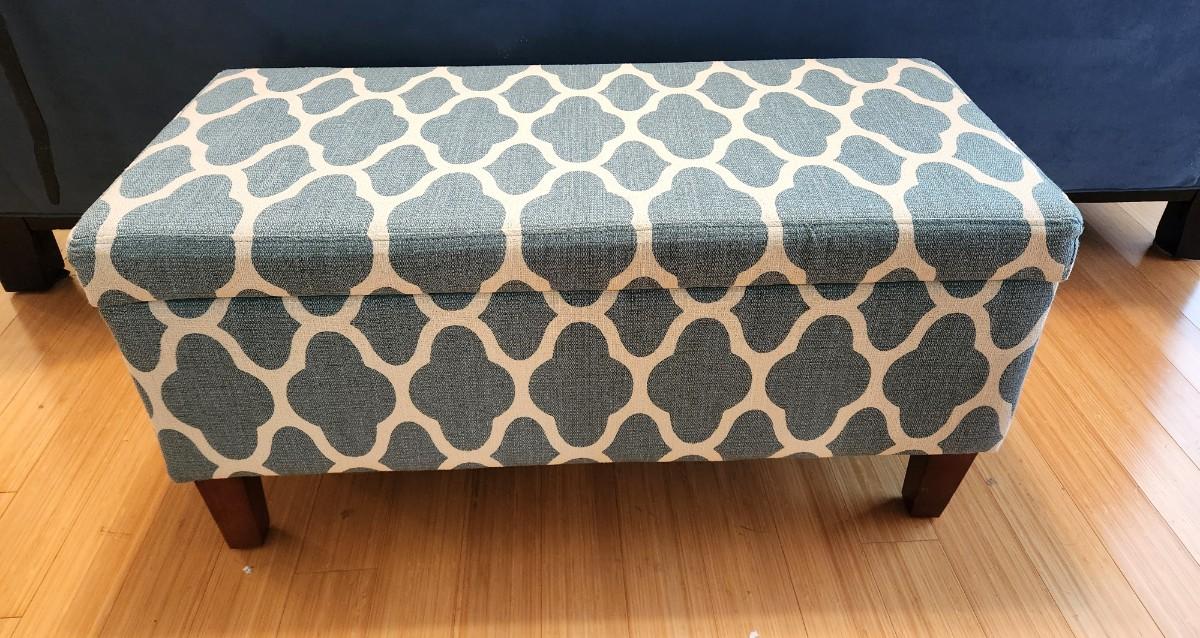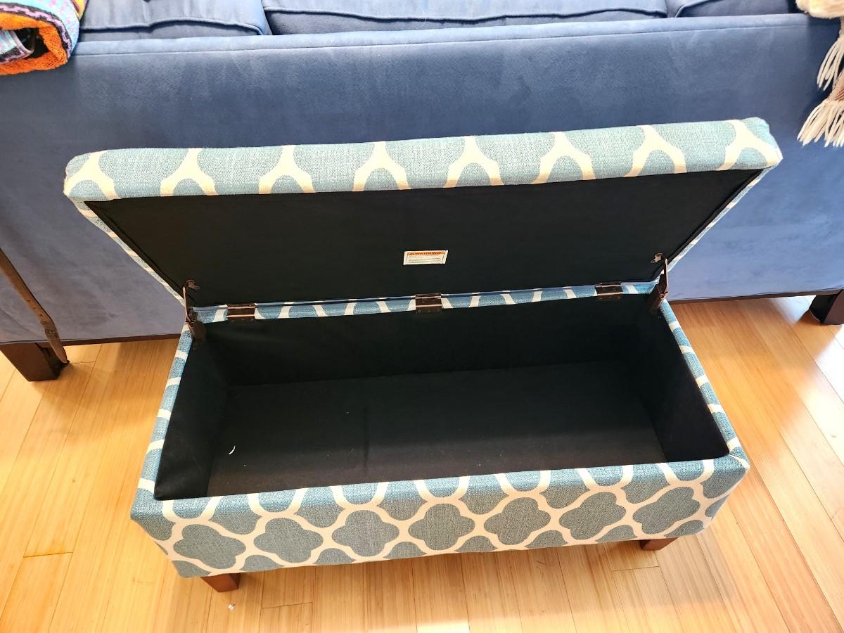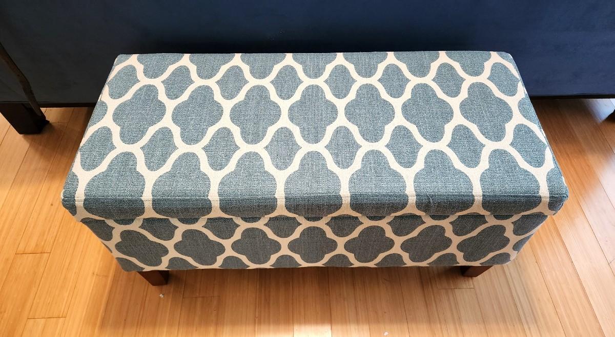 Attractive contemporary upholstered storage bench - 18" tall, 3 feet across, 16" deep. Good condition - clean.
