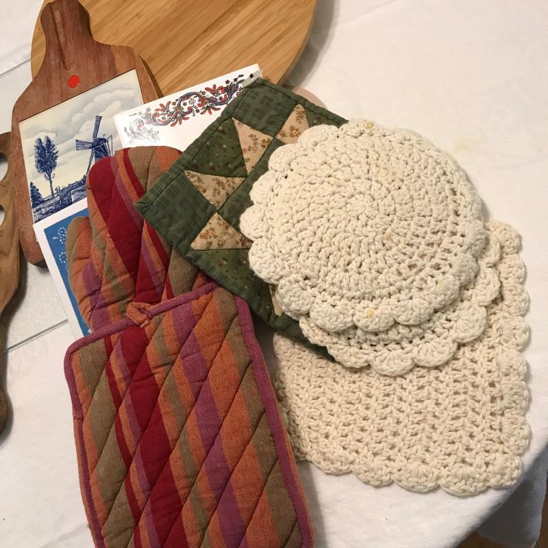Lot 15 - Cutting Boards, Trivets, Pot Holders and Mat