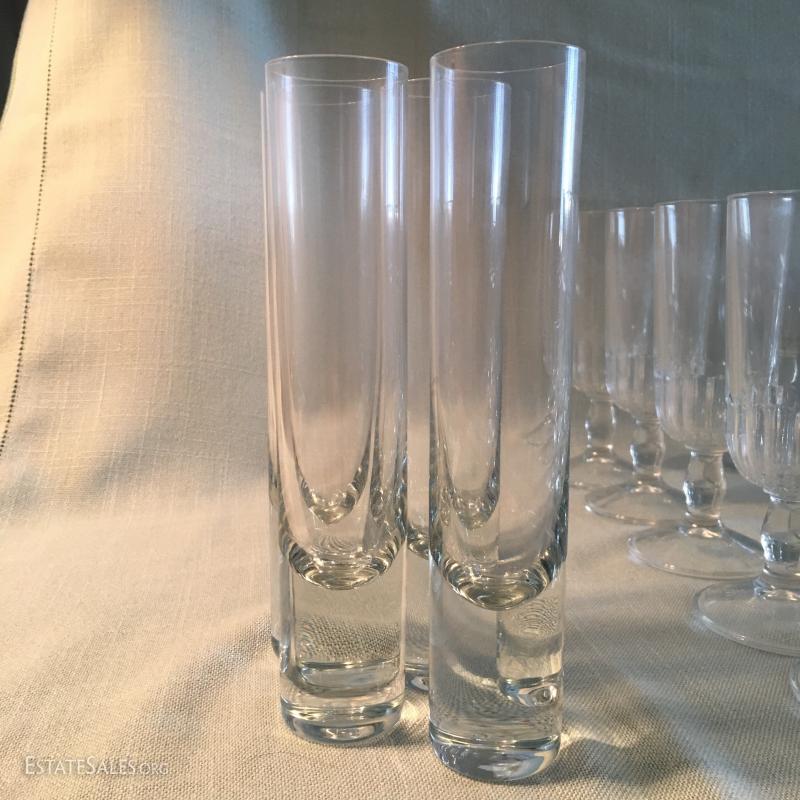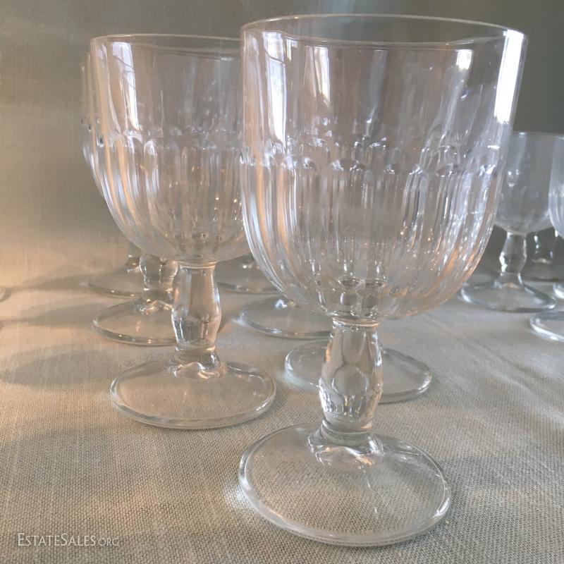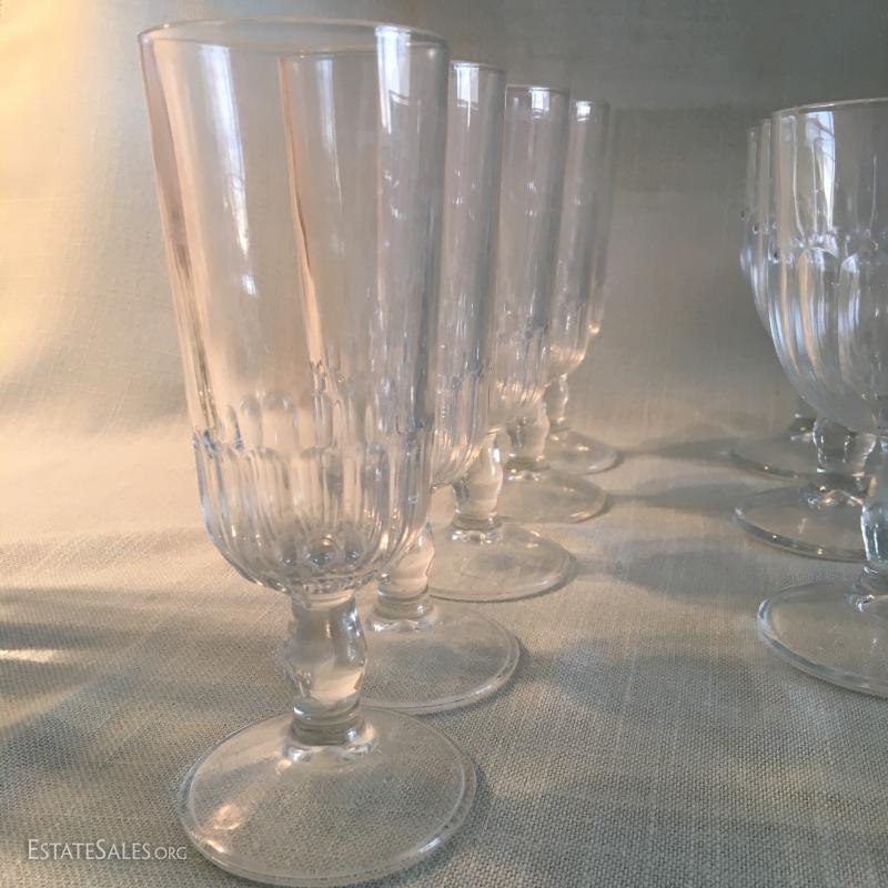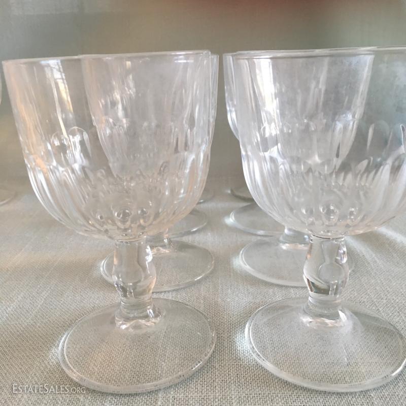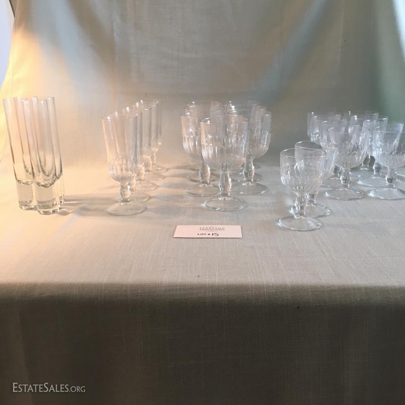 Breakdown: Seven glasses 6.5" x 3.5" ; Five glasses 7" x 2.5"; Eight glasses 5" x 3"; Two glasses 4.5" x 2.5" and 4 tall & skinny 8" x 1.5".