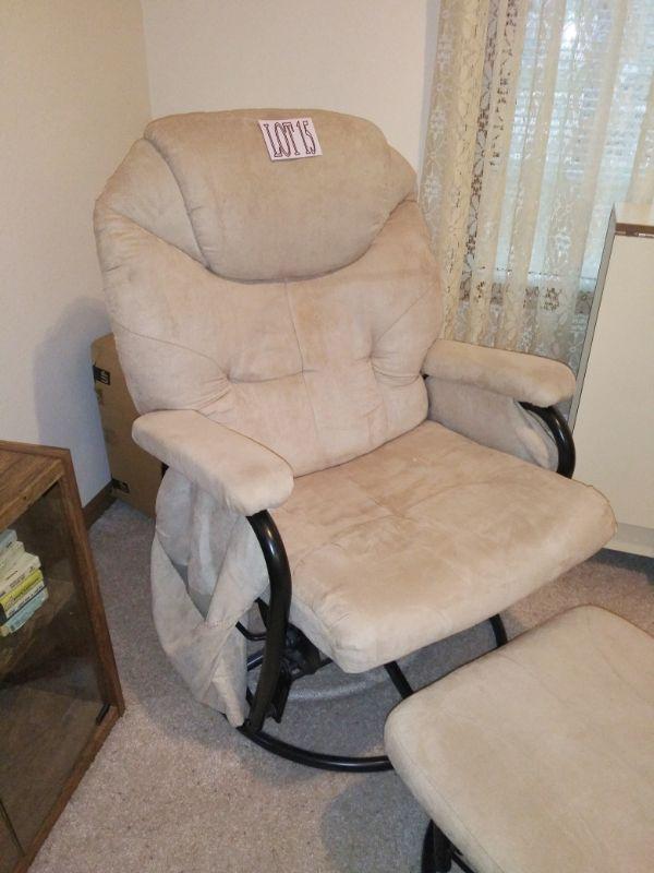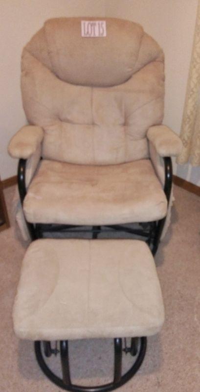 THIS MICROFIBER TAN GLIDER W/OTTOMAN IS IN VERY GOOD CONDITION