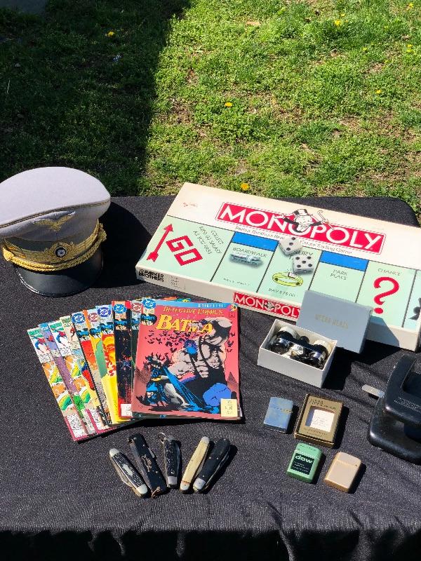 LOT 15 -Hat, Opera Glasses, Monopoly, Knife Collection, Zippo Lighters, Comics