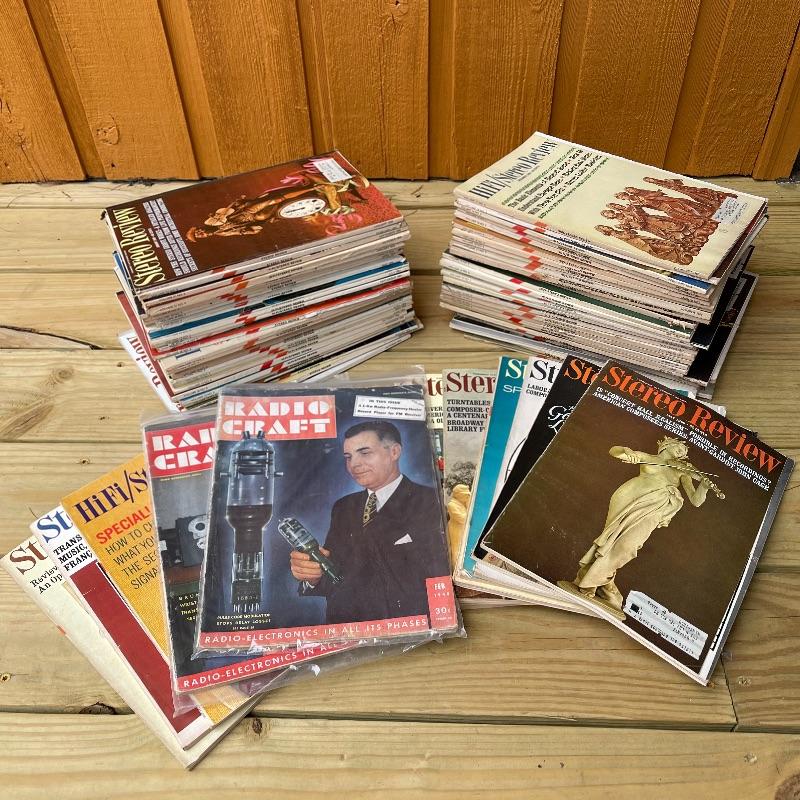 This lot includes a collection of HiFi/Stereo Review Magazines dating from March 1964 - December 1970, and two Radio Craft magazines, dating April 1948 and February 1948, which are in plastic sleeves. The magazines are in varying conditions and there are 74 total.