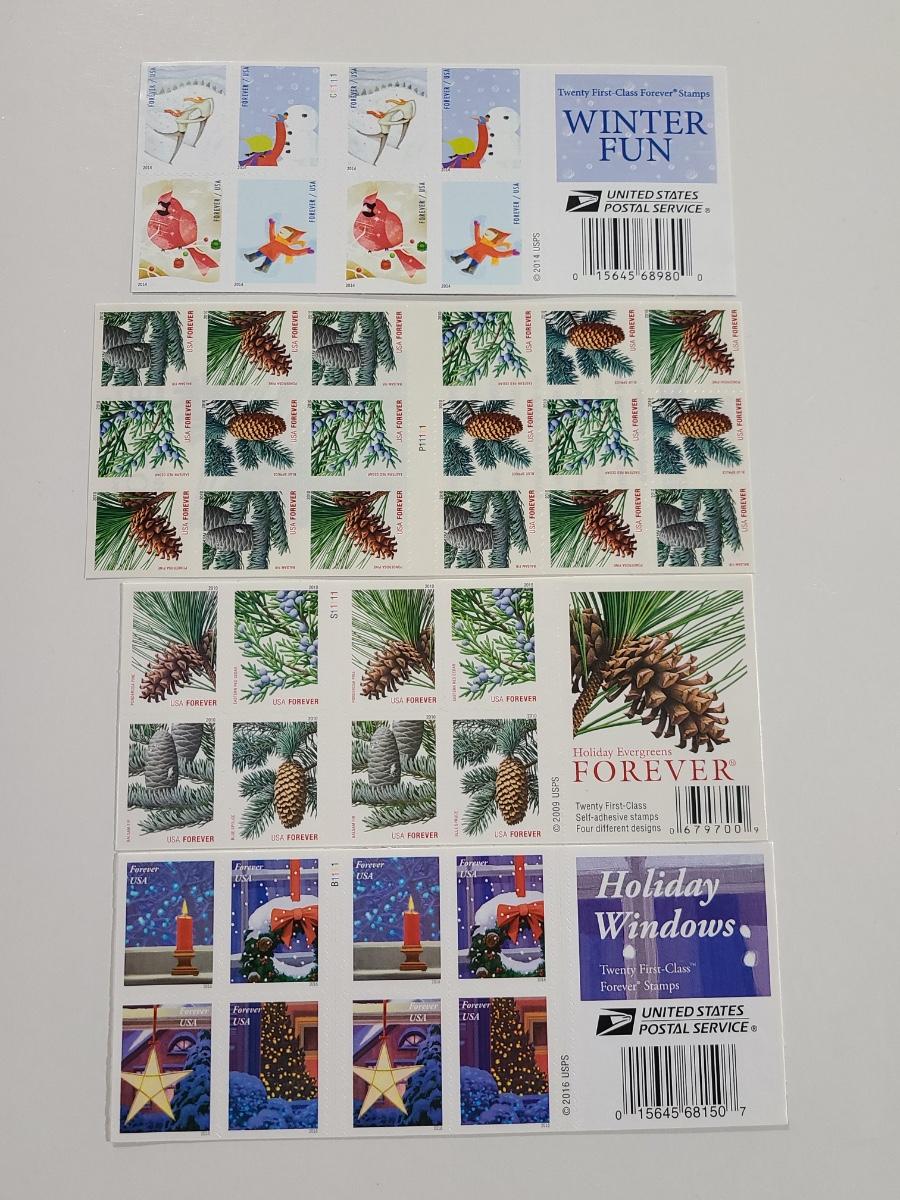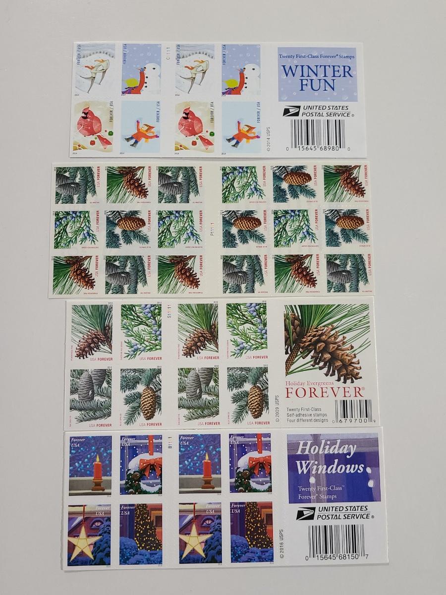 Lot 15: Holiday/Winter Forever Stamps: Holiday Wintergreen, Holiday Windows, Winter Fun (78 Stamps)