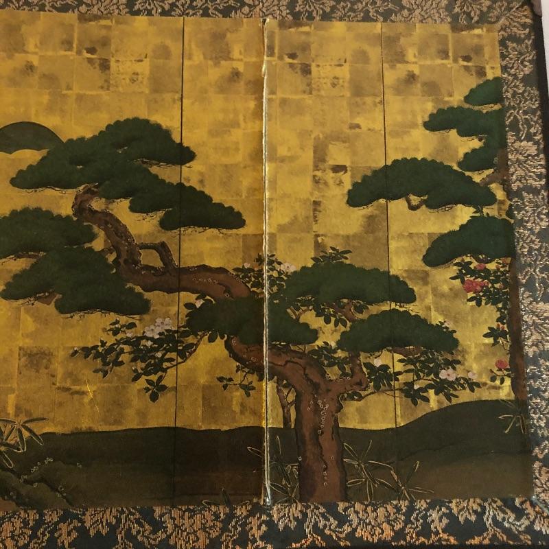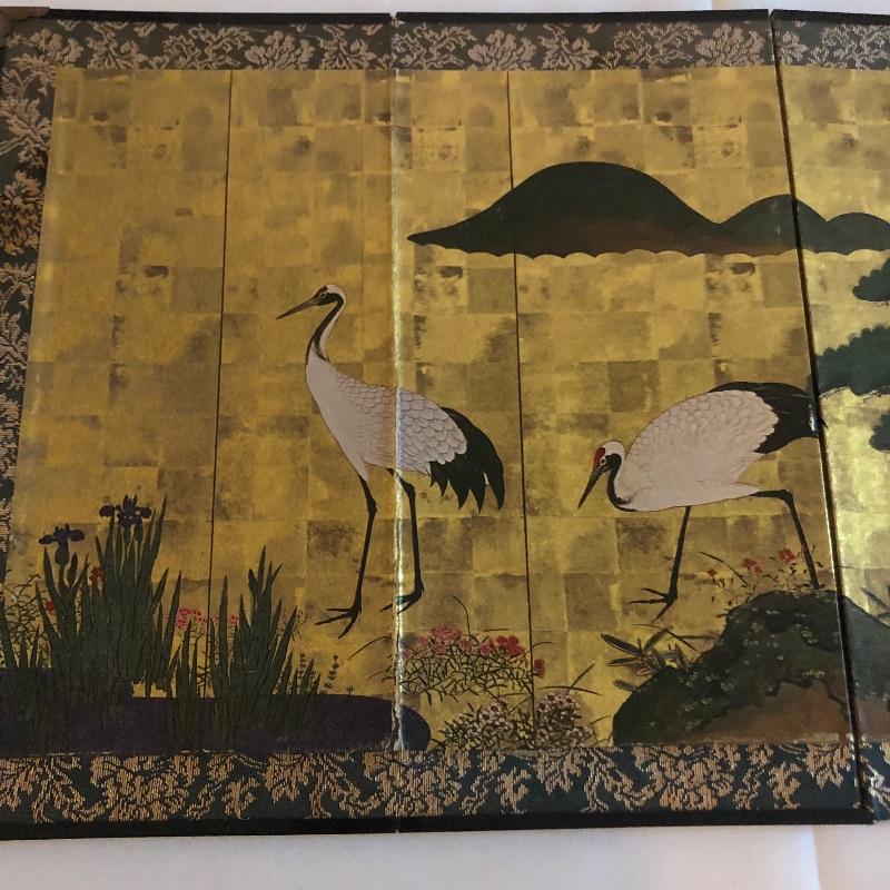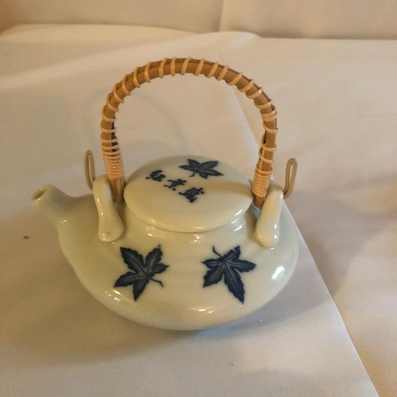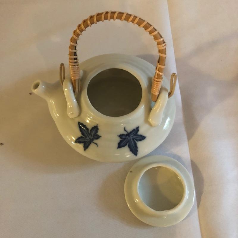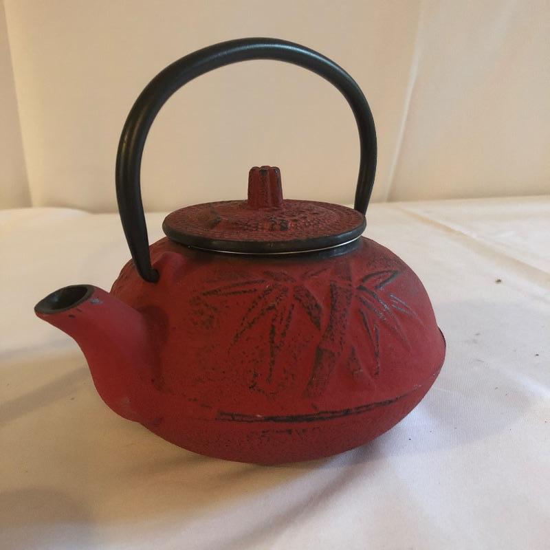 This lot contains some lovely Japanese items that includes a 5 piece tea set, an additional tea pot and a miniature folding screen. The vintage screen measures 18” x 9” and appears to be hand painted; it’s a delightful piece of art with two sand cranes on a gold painted background trimmed with a fabric edge. There are minor signs of aging that includes some sun bleaching on the back and a few worn areas on the front, the last few images show this. The smaller of the 2 teapots comes with 4 matching very small cups. The additional red teapot is cast iron and has a built in strainer.