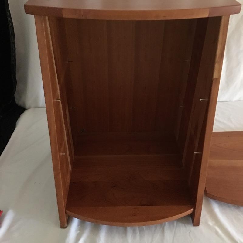 Beautiful Levenger Readers end table with two removable shelves. Appears to be solid wood. Treat yourself to this beautiful side table. End table measures 15” x 17.75” x 24.25”.