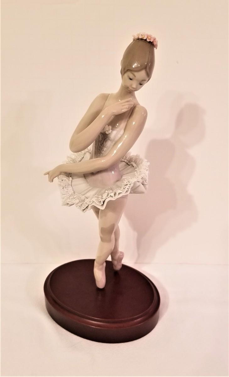 Delicate Lladro Ballerina on Stand - 10" tall on base, no box - good condition.