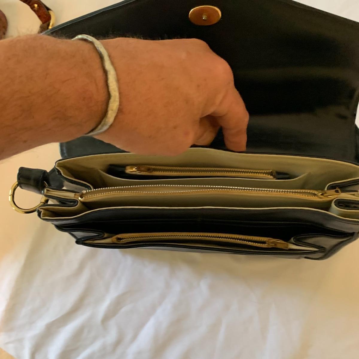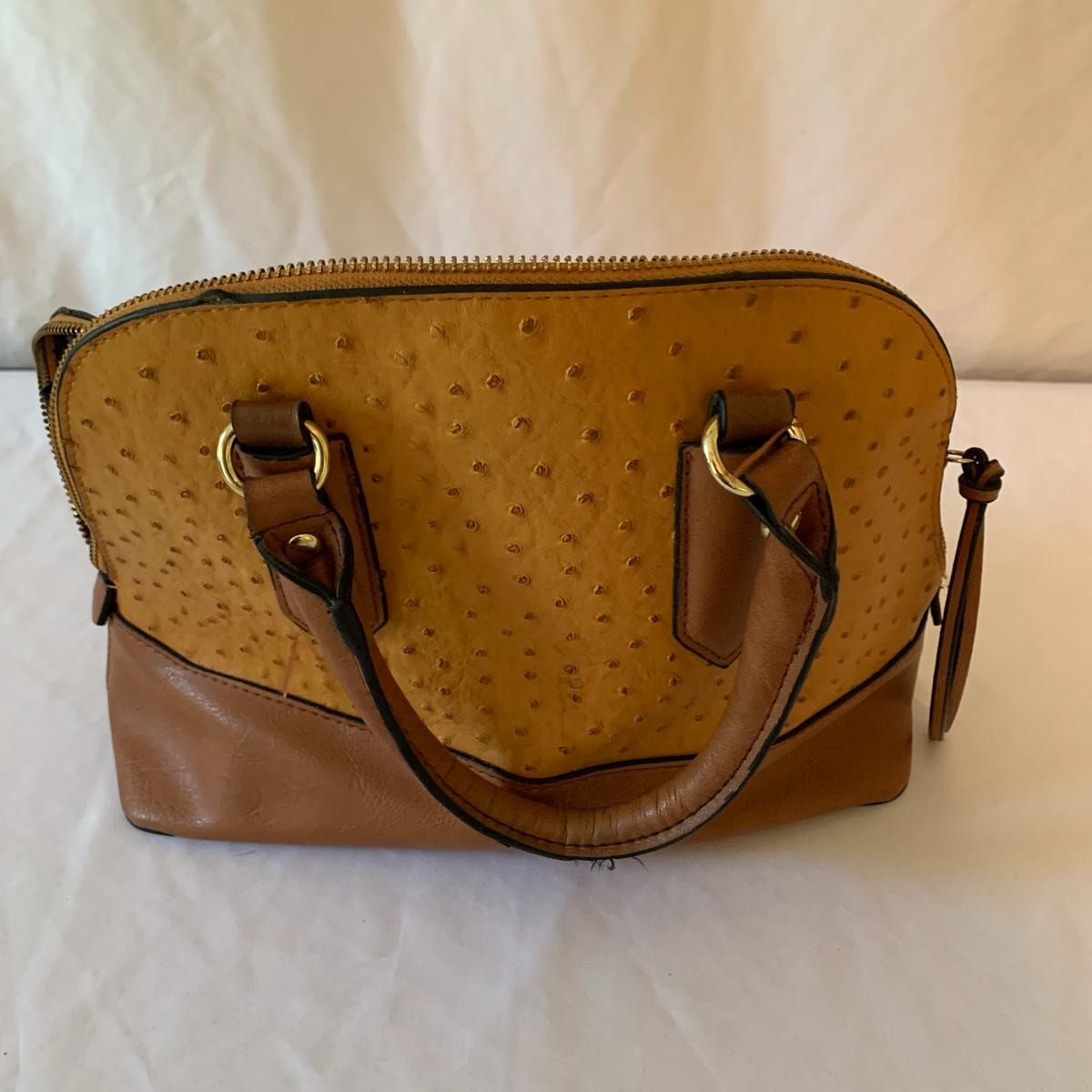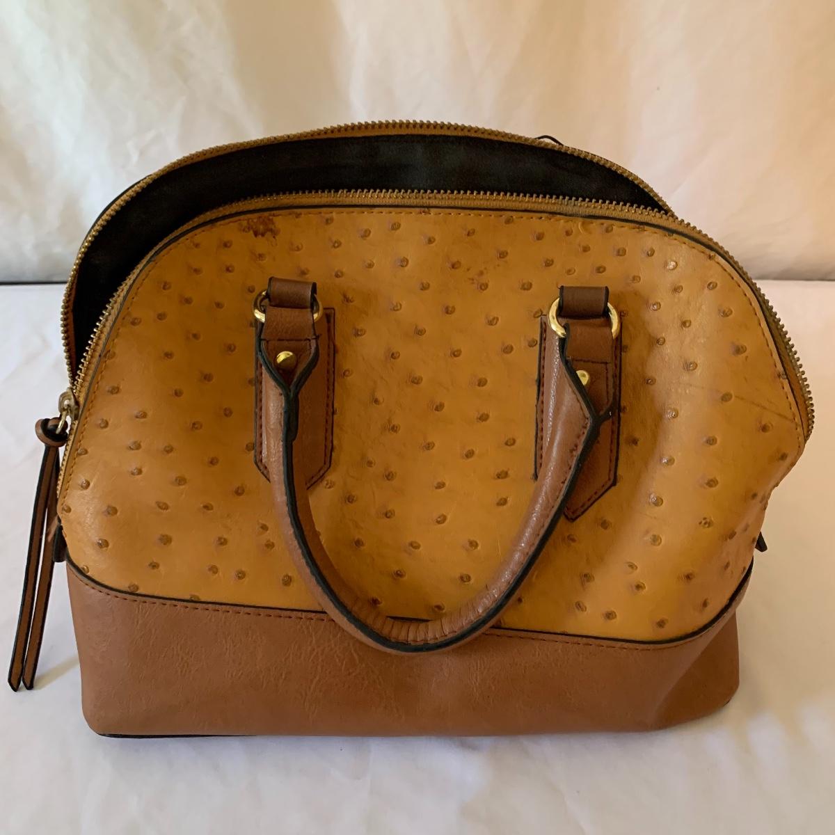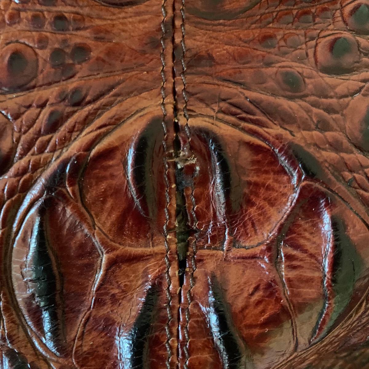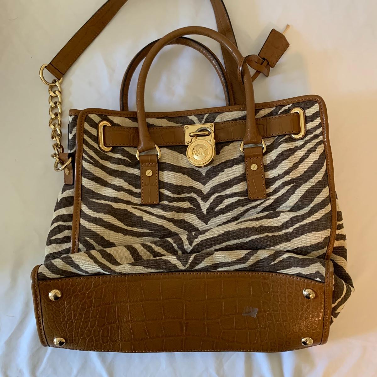 Ladies, it’s time to add to that purse collection! First up in this lot is a Brahmin faux alligator bag, it is missing its latch, but still lays flat and is in otherwise good condition. Approx 17" wide x 6' deep x 17' tall from handle. Next is a Michael Kohrs bag that features a zebra print canvas and gold hardware. This bag is in good condition. A black sequin clutch purse with corded handle is made by Lancôme in good condition. Also offered is a dark navy blue bag and brown satchel in good condition. Neither of the last two have markings of who they are made by. See pics for details. Shipping available.