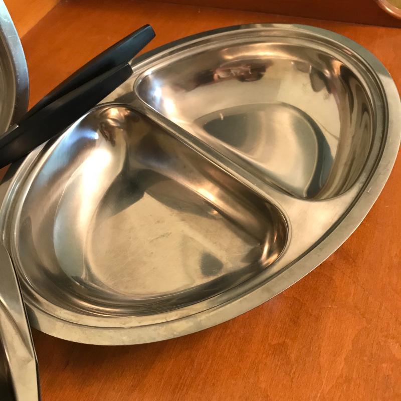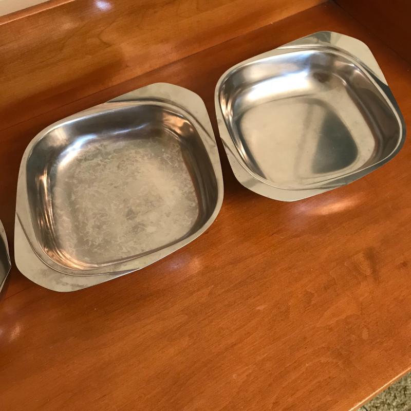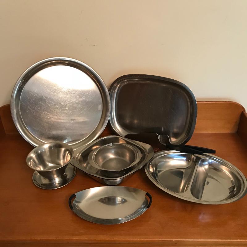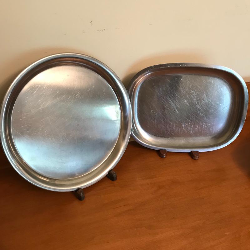 Great MCM lot to help you serve your next party in style. Round tray has a 12.5” diameter while the rectangular tray is approx. 12.25" x 9.75”. Shipping available.