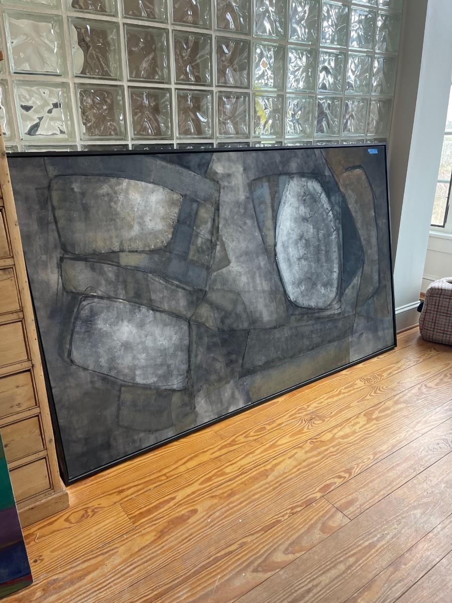 This painting is called "Dark Journey", it is an abstract painting, measuring 81" long and 48" wide. It is signed and name on the back and was originally purchased for $3000.00!