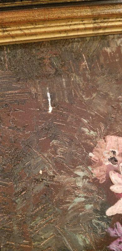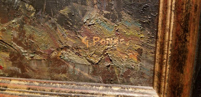 Very attractive framed original oil by artist G. Ponge (signed). Measures 21 1/4" wide and 24 1/4" long. There is one small spot where it looks as if the paint may have "dripped" a bit (as shown).