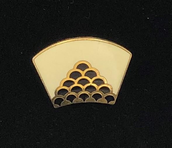 I believe that this is a clip for going around the knot of a scarf, but I'm not 100% sure. It is enamel painted on one side and does open on the back to fit around your scarf.