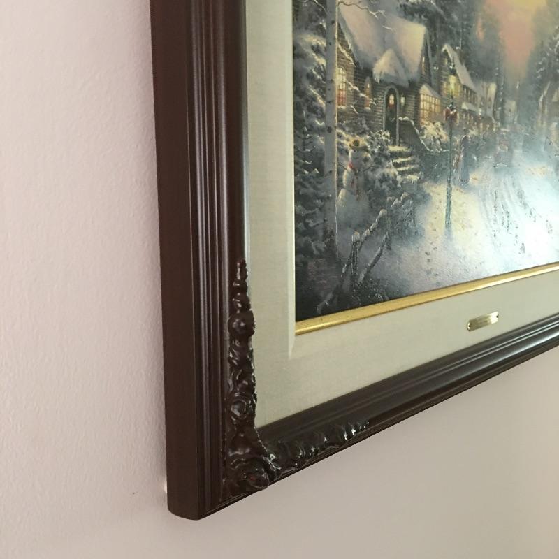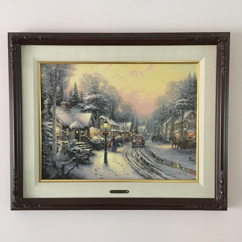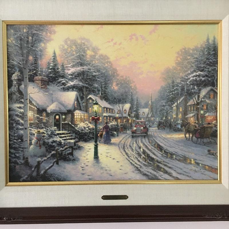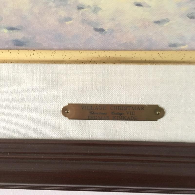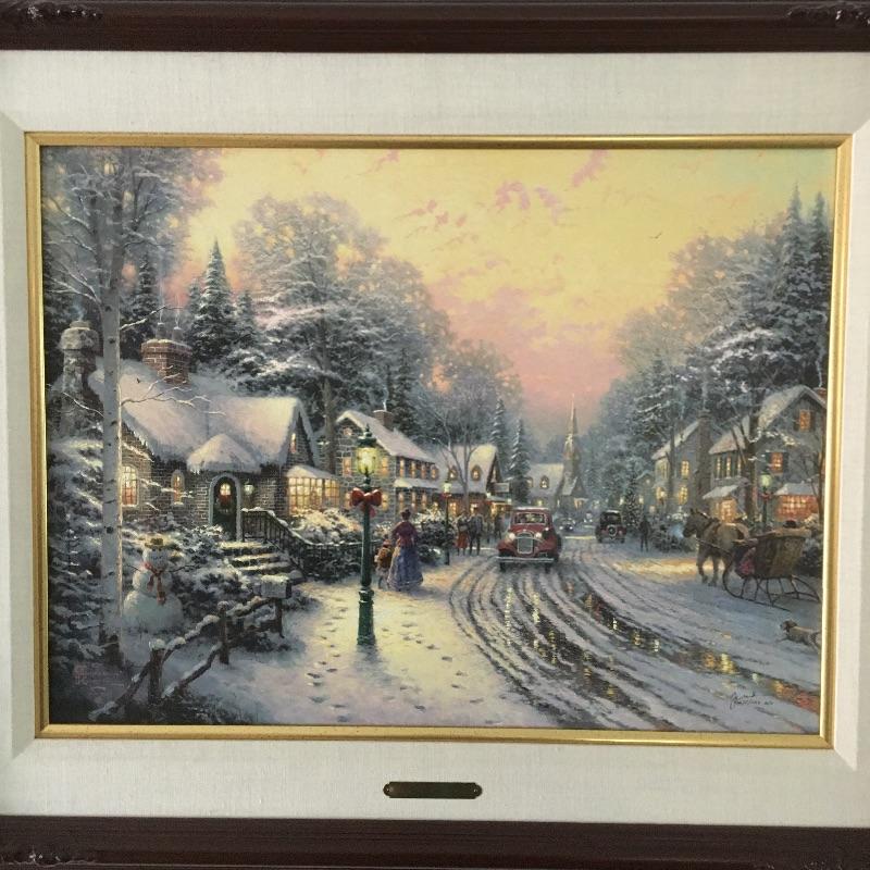 Thomas Kinkade Signed & Numbered Canvas Lithograph titled Village Christmas. Individually hand highlighted with oil paint that makes this lovely festive scene really pop from the canvas.