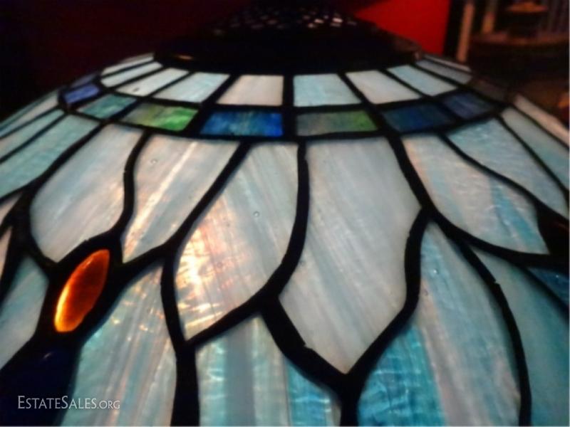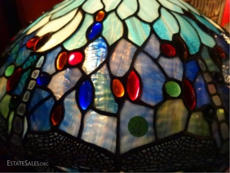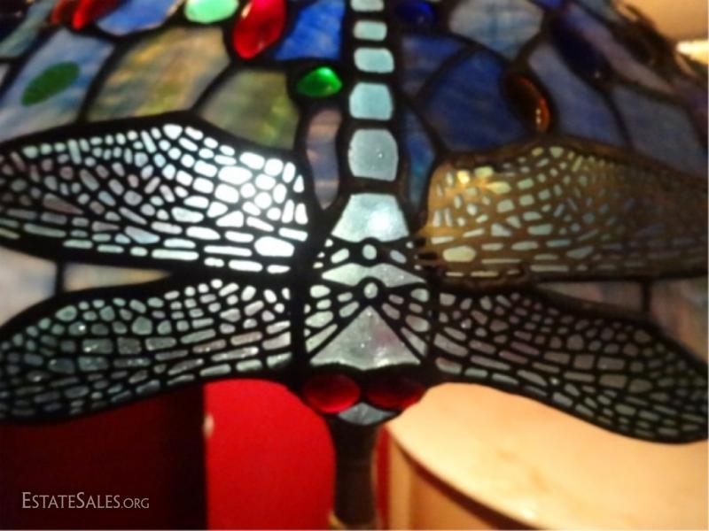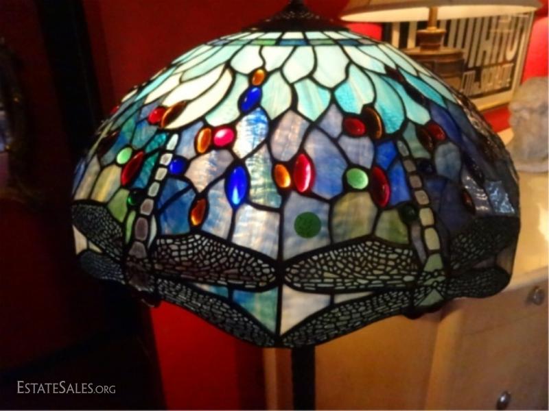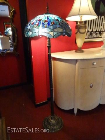LOT 15: TIFFANY STYLE LEADED GLASS DRAGONFLY FLOOR LAMP