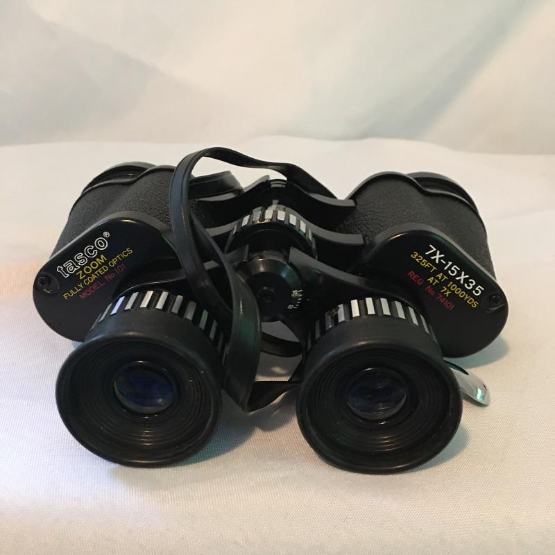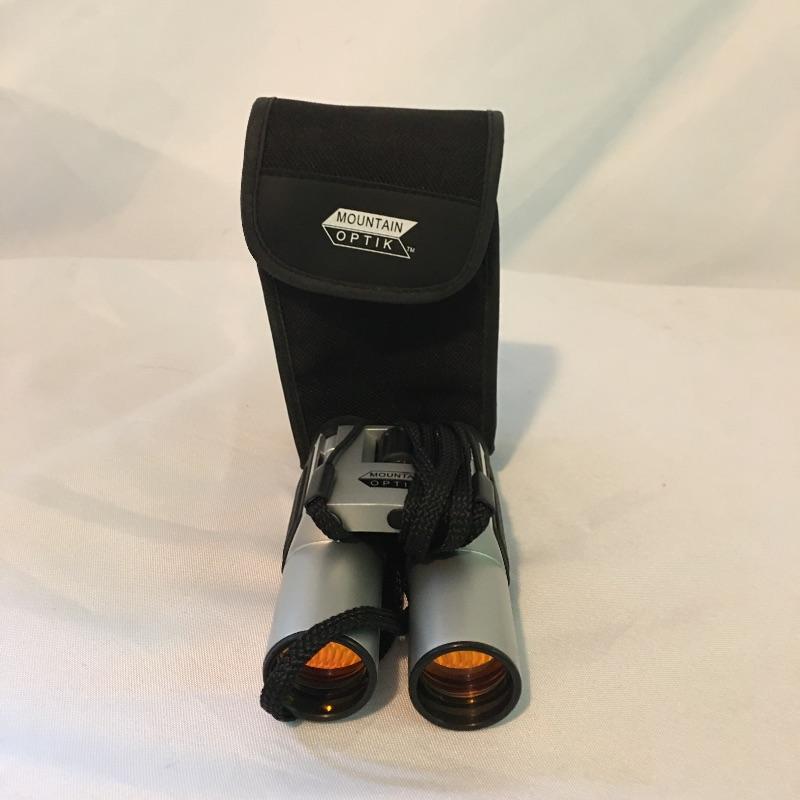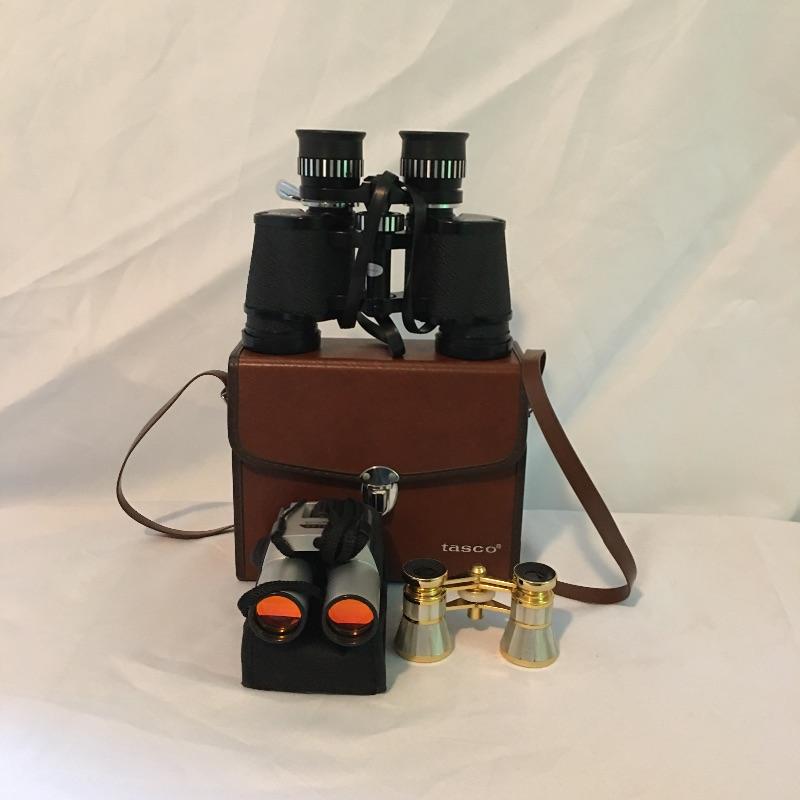Trio of binoculars. Lot includes Tasco model # 101 7x-15x35 with case, Mountain Optic 12 x 25 with case and a pair of Duchess 3x model # 708. A great lot for all you birders out there.