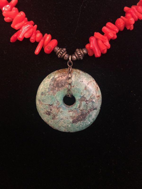 Lot #15 Turquoise and Red Coral Choker Pendant