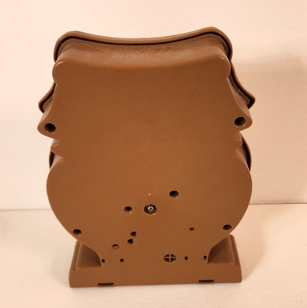 Cute little owl time-telling teacher. Put the hands where you want them, press the button, and owl's eyes pop open with the correct answer. Excellent condition, 10" tall.