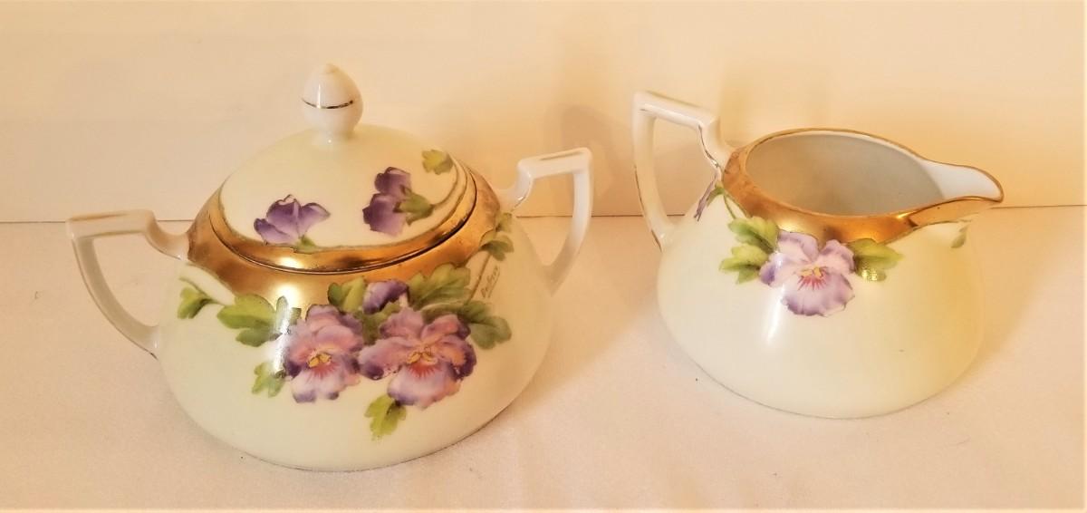 Lovely antique sugar and matching creamer - marked "Bavaria" - pre 1923. Great antique condition. Sugar is 3" tall,