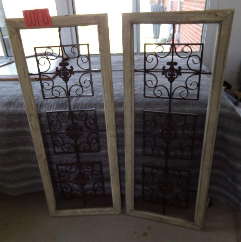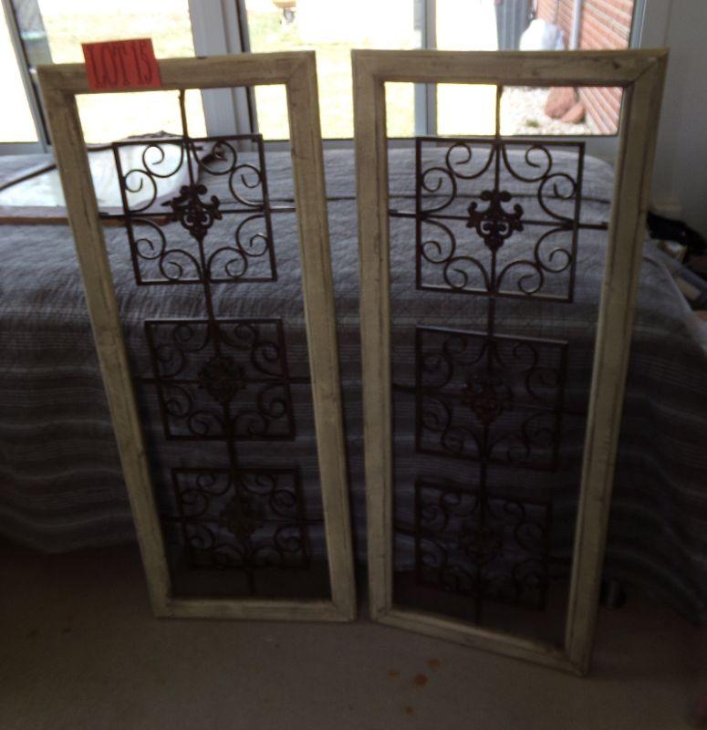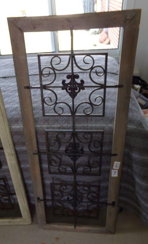 Wooden framed decorative iron wall hanging decor measures 43" tall 16" wide