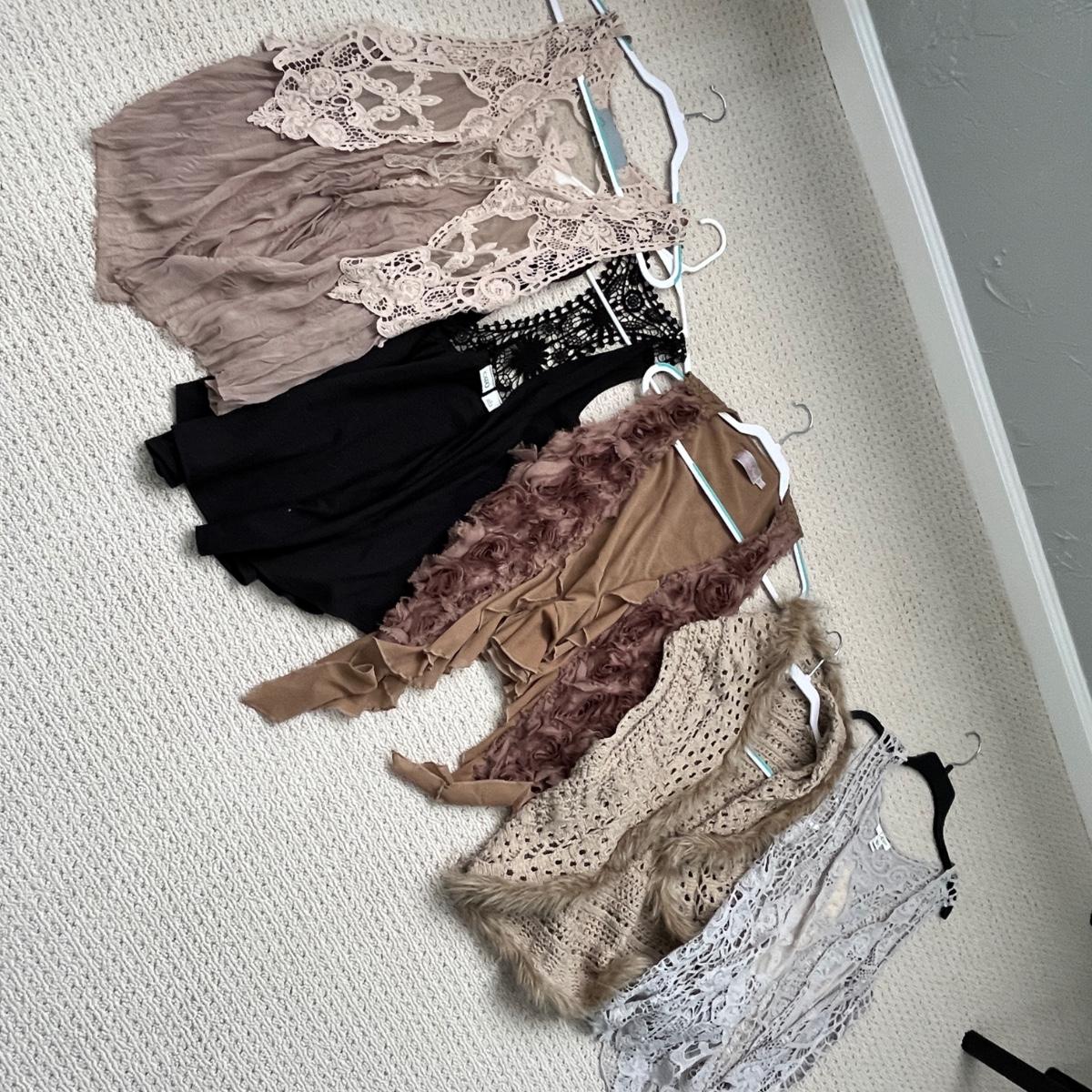 Lot 150 fringe vests - tans, brown, black and grey 2M, 2L, 1XL
