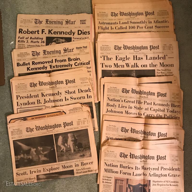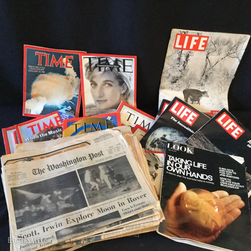 Reminisce about what was going on in the world years ago. These magazines and newspapers capture important moments in our history including moon landings and Kennedy Assassination. See photos for details. Shipping available or local pick up in Flat Rock, NC.