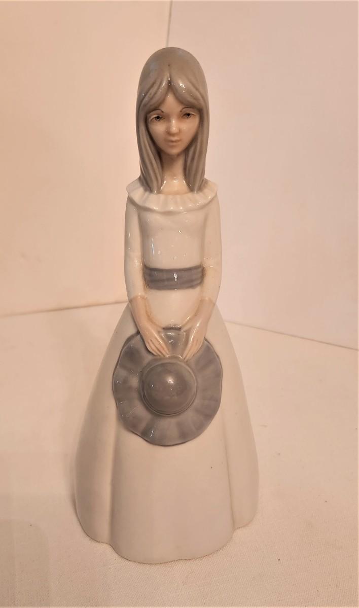 Styled like LLADRO, but by a different Spanish porcelain company - "Porceval". 1980's figure by Miguel Requene, no box, 8.75" tall, incised mark on bottom. Good condition.