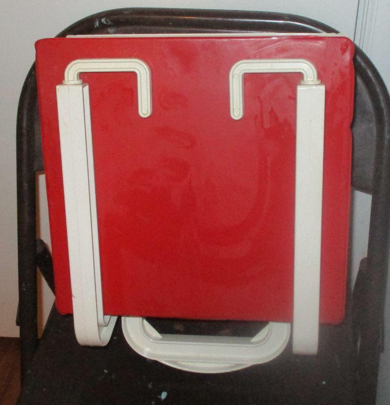 In excellent condition. It's photographed at an angle because the chair collapses back down when you aren't sitting in it and tilting it was the only way that I could get the pictures.