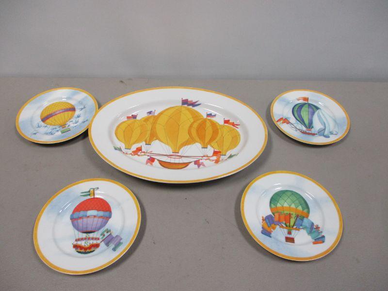 Lot 150 - Williams Sonoma Montgolfiere Salad Plates & Platter - Hot Air Balloons