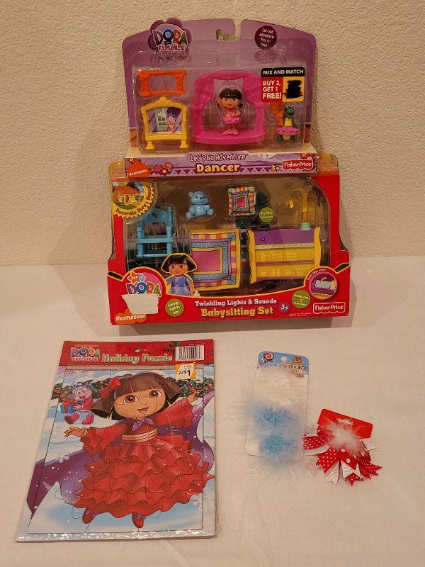 Lot 150: New (2) Dora the Explorer Play Sets, Puzzle and Holiday Bows