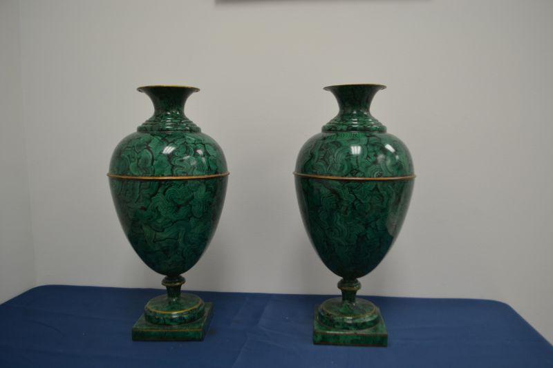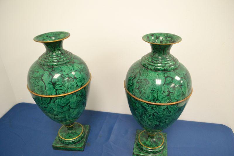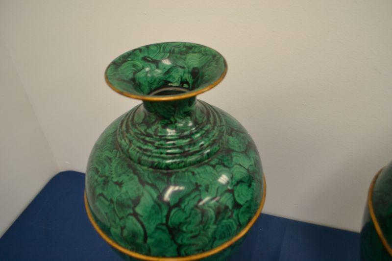 LOT 150 TWO.  MAITLAND-SMITH LTD.  LARGE GREEN METAL VASES  19" TALL