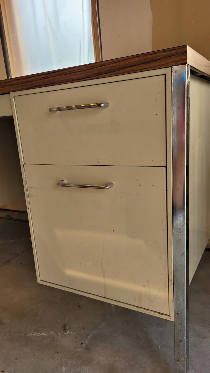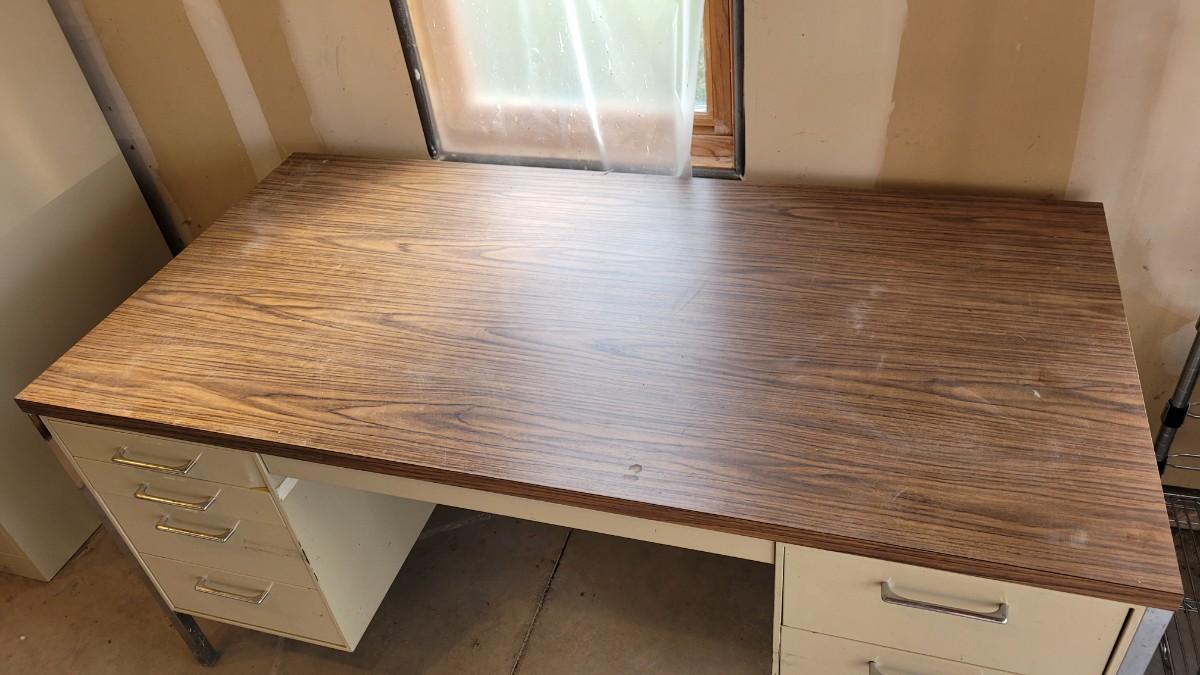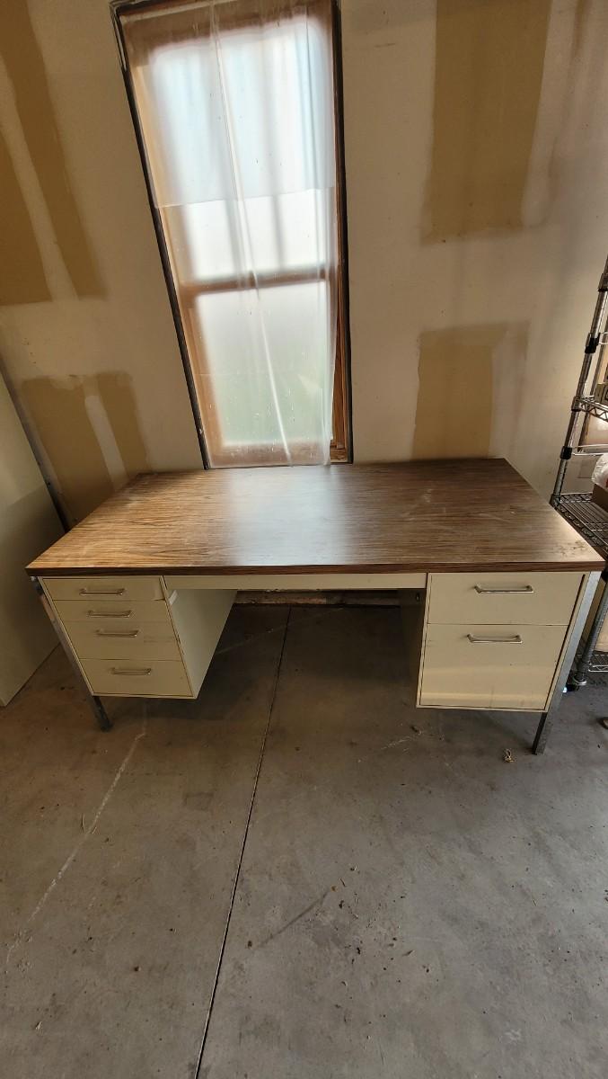 Lot 150: Vintage Metal and Wood Office Desk