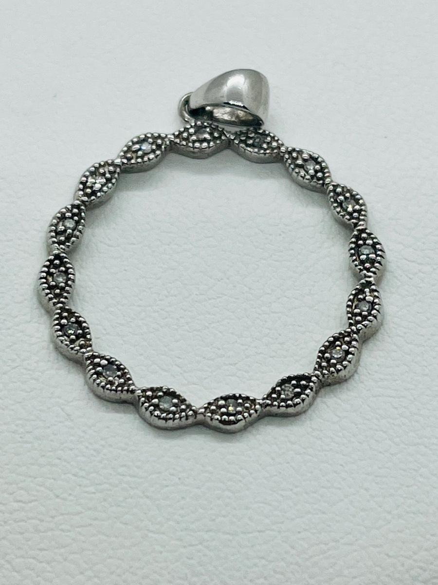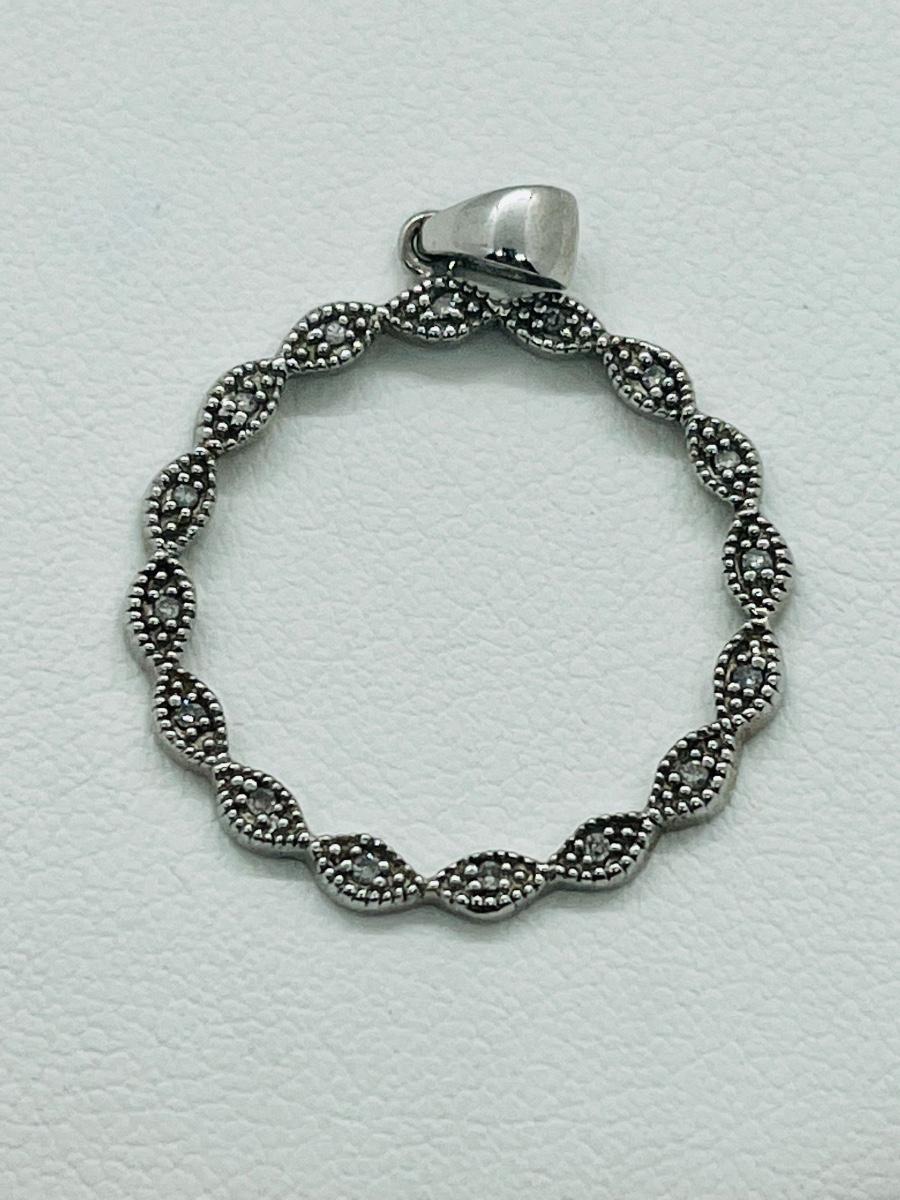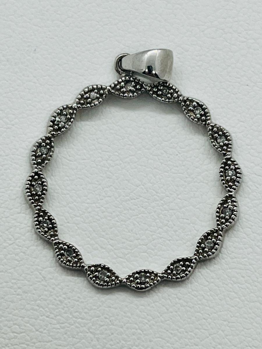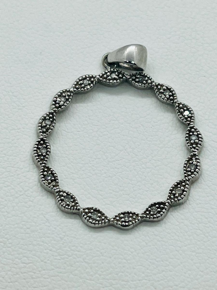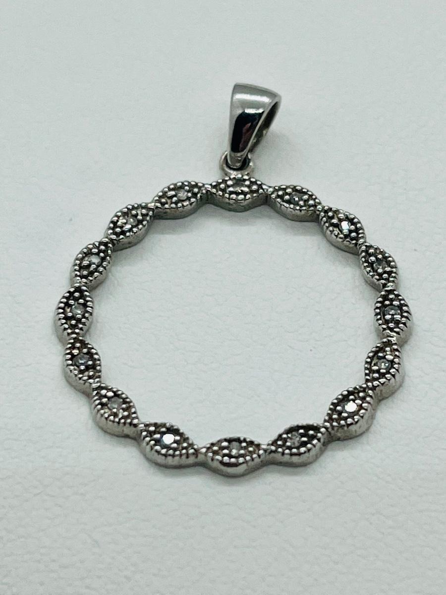 16 diamond chips set into sterling circle bail marked 925.The pictures show condition, measurements if taken, and what is included in the lot. Due to the large amount that we photograph and the time frame, we are not always able to take measurements. All items unless noted, are pre-owned and have been used, and are untested. Thank you