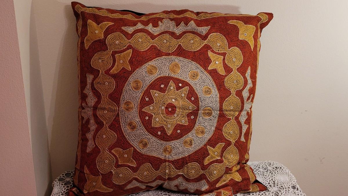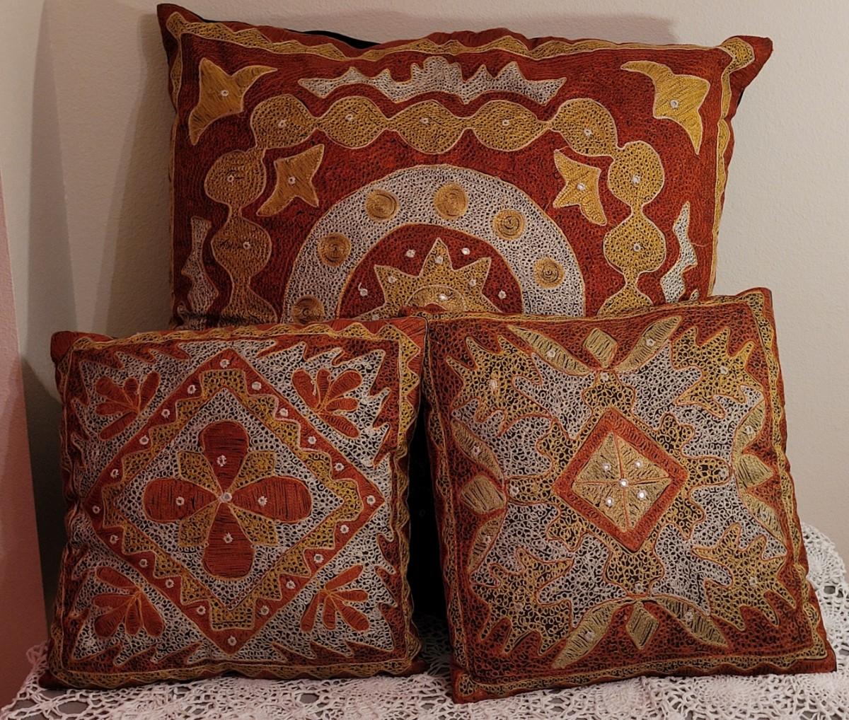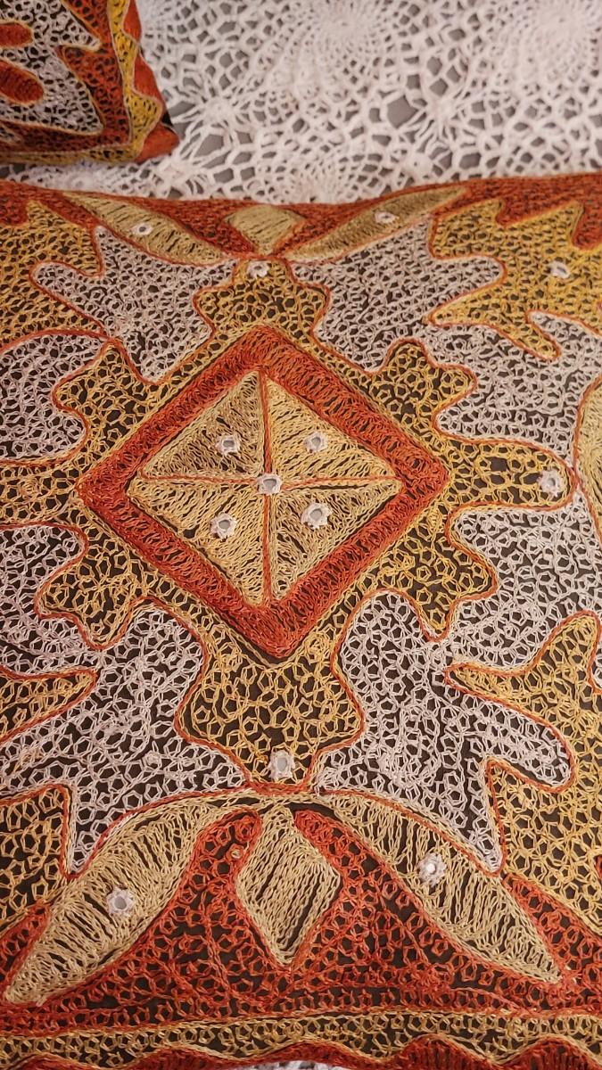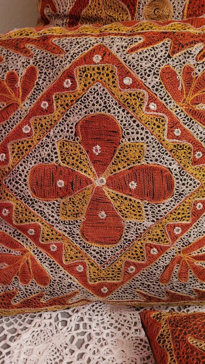 Lot 150: Decorative Pillows- Orange, yellow, black and white