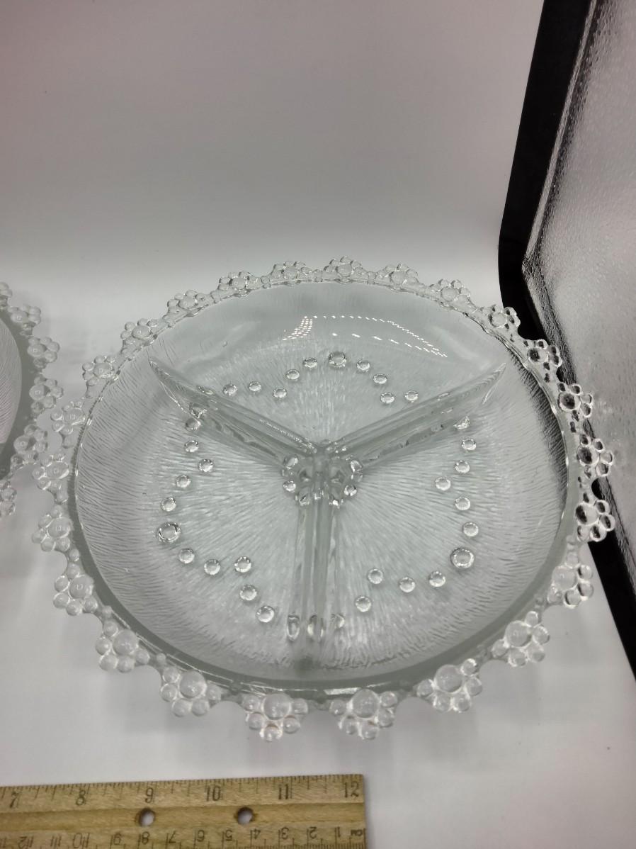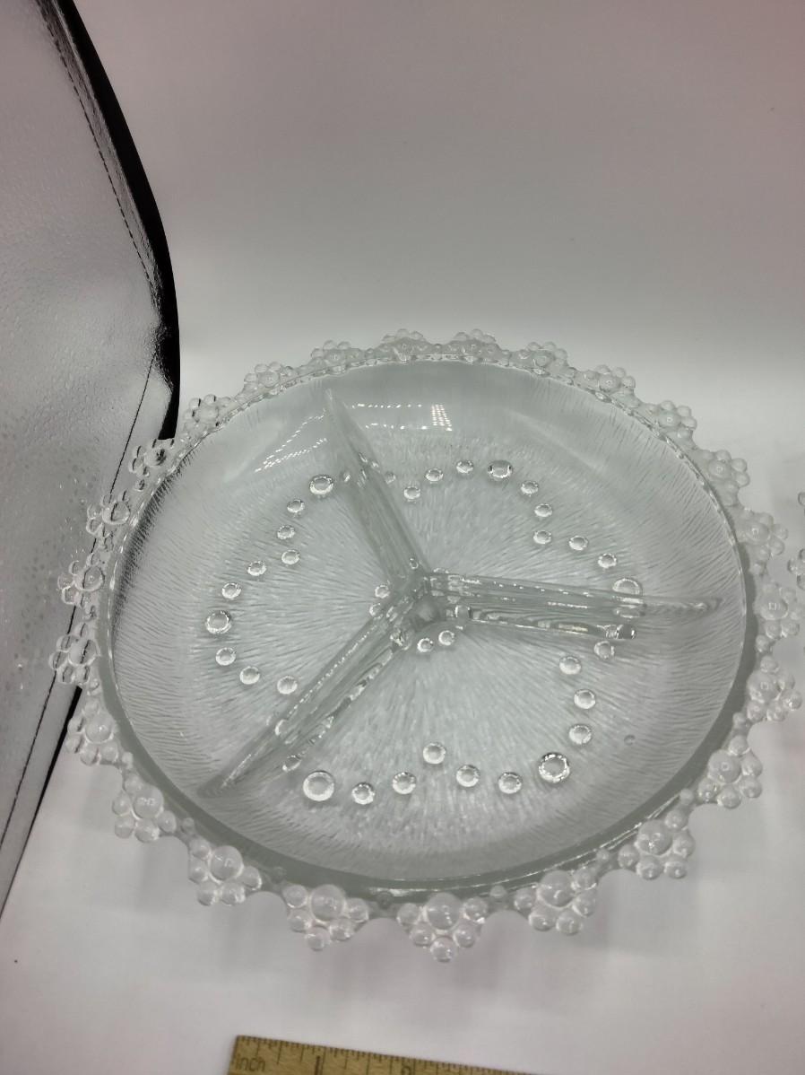 masserini barocco. bubble edge italian textured glass divided platter three part plate collectible glassware. Circa 1960s.