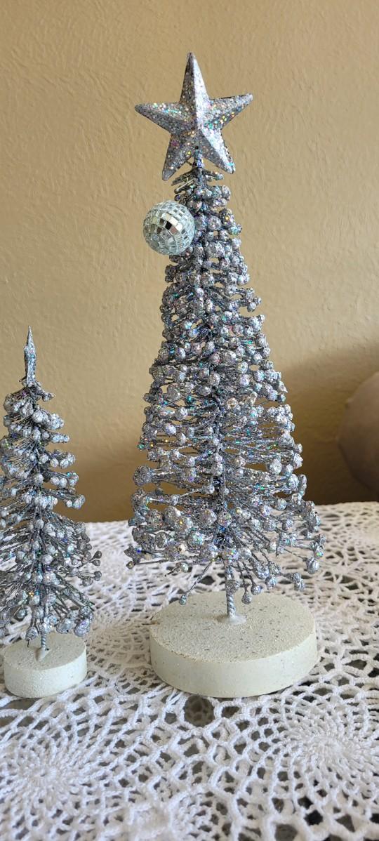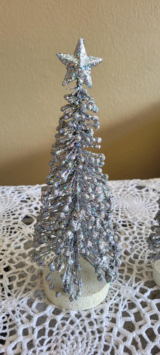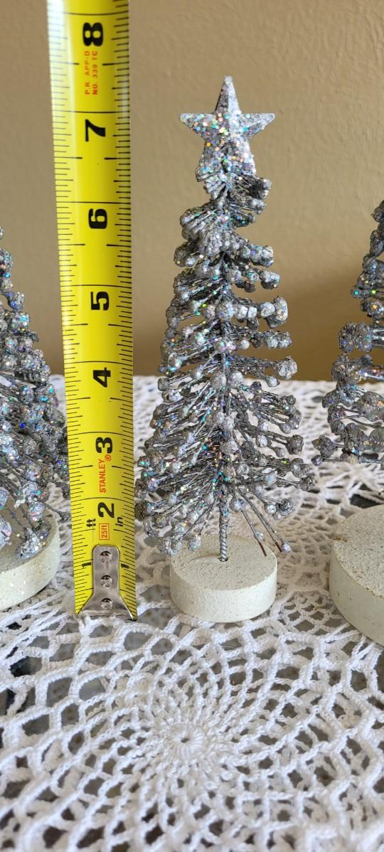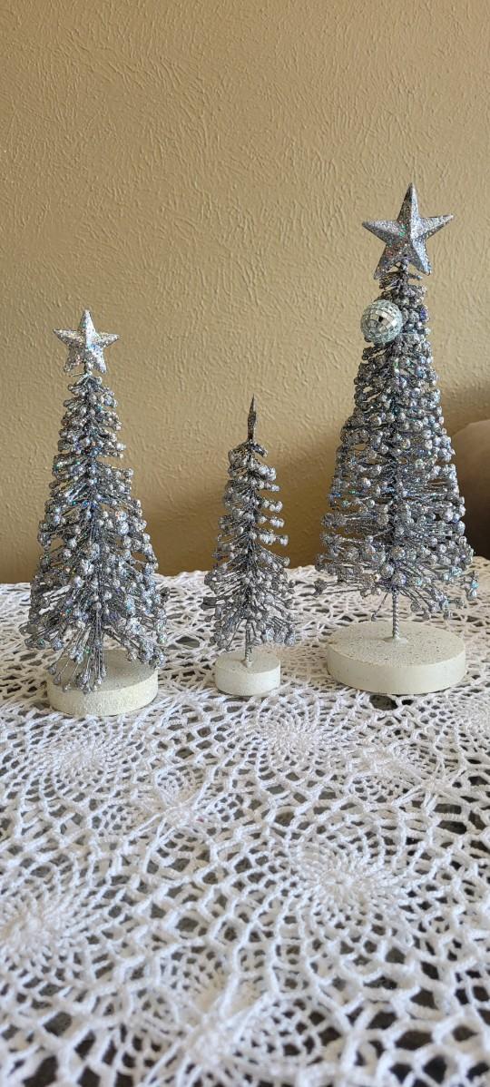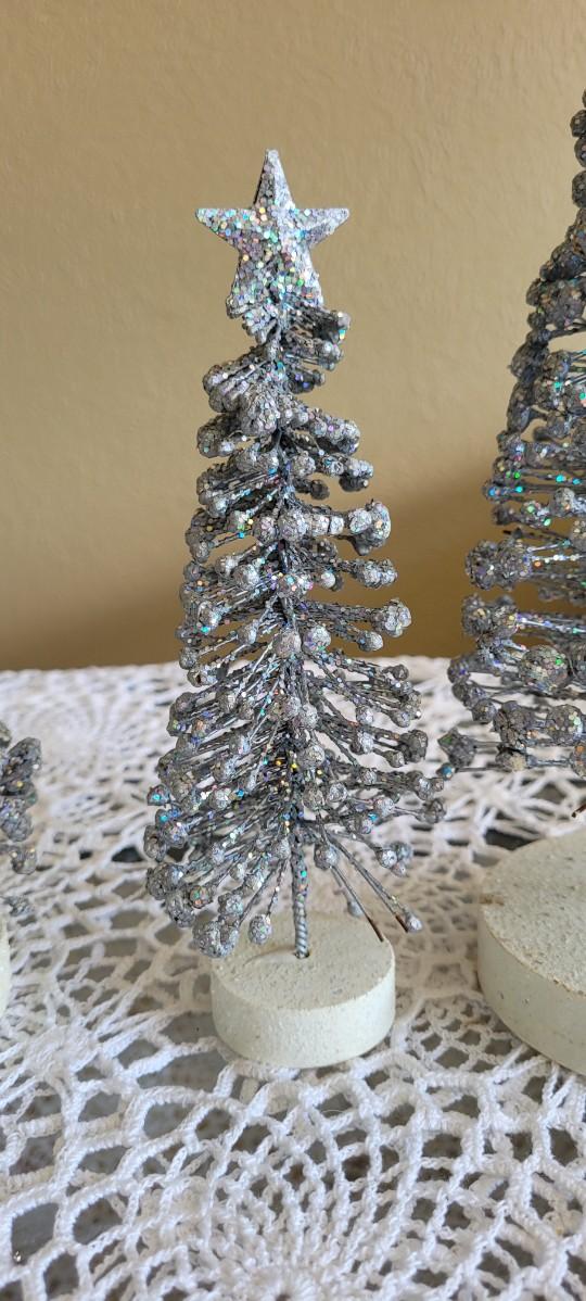 3 Graduated Height Silver Christmas Trees.