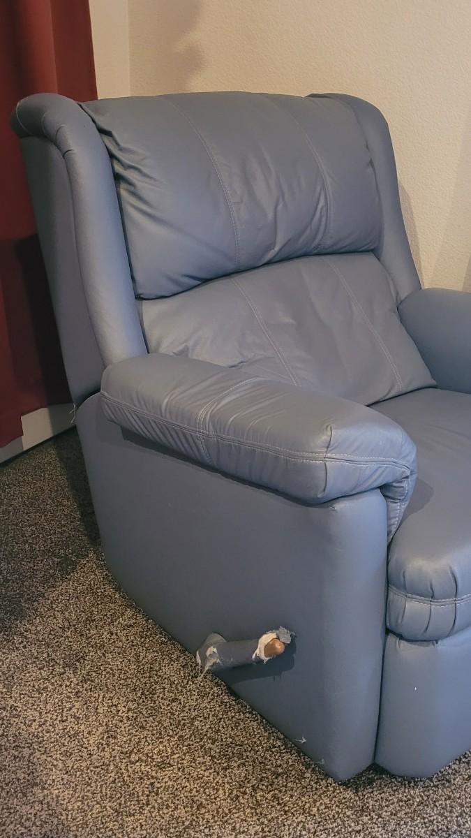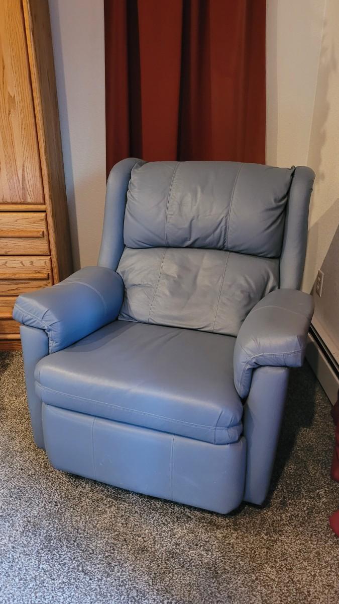Lot 150: Blue Leather Recliner