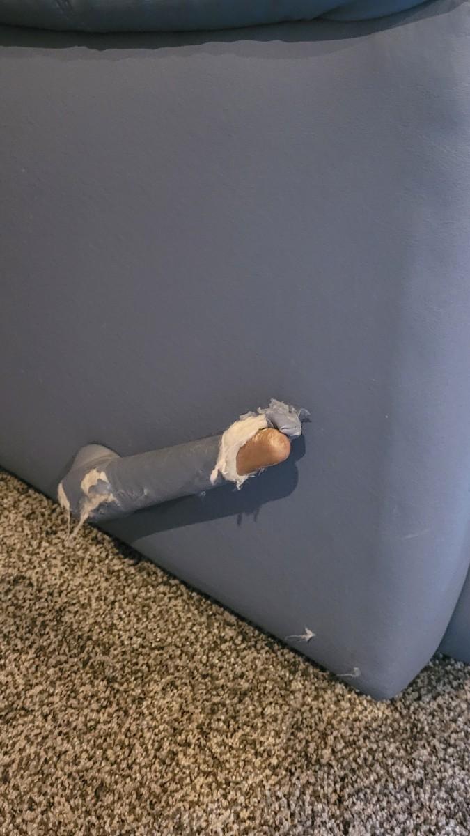 The handle has damage to the leather only.