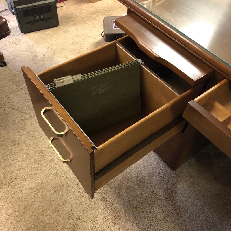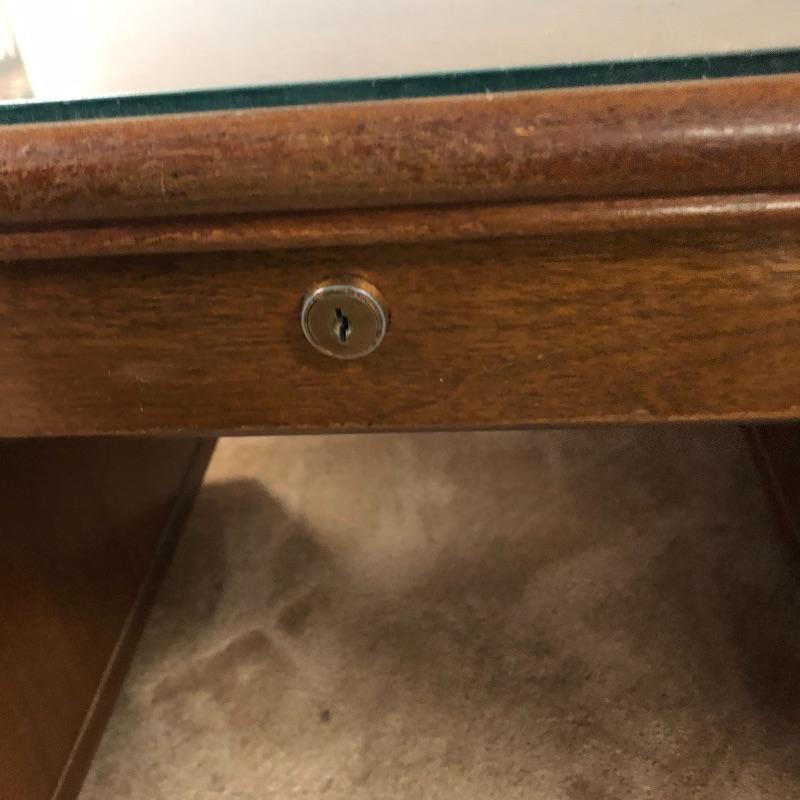 This “˜worth it’ piece is EXTREMELY HEAVY & LOCATED IN THE BASEMENT - BRING 3 or more people to move, the desk will have to be turned sideways to fit through a 30” door and walked uphill via a sidewalk to driveway.