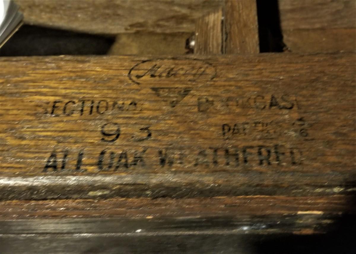 Nice antique oak MACEY Barrister Bookcase (fully marked) - 4 sections - glass fronts - Early 1900's. Good antique condition. 34" across, 12" deep, 57.5" tall. Comes apart for easy transport.