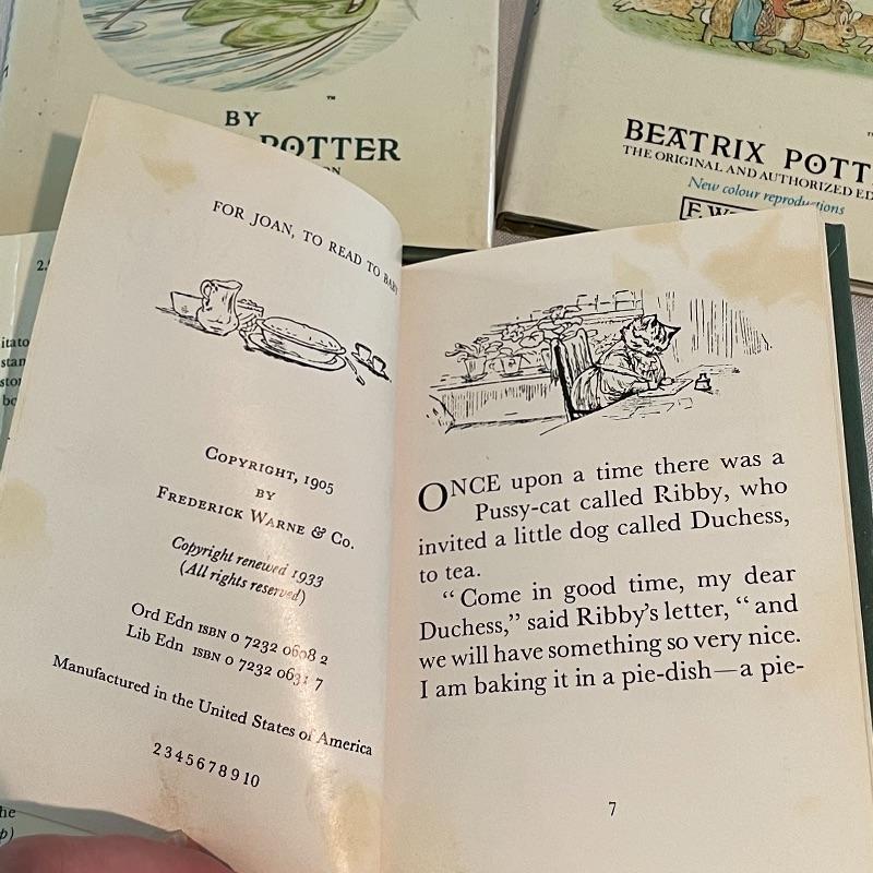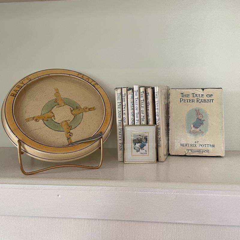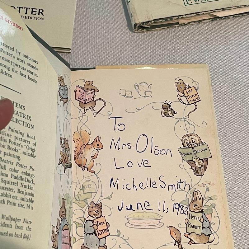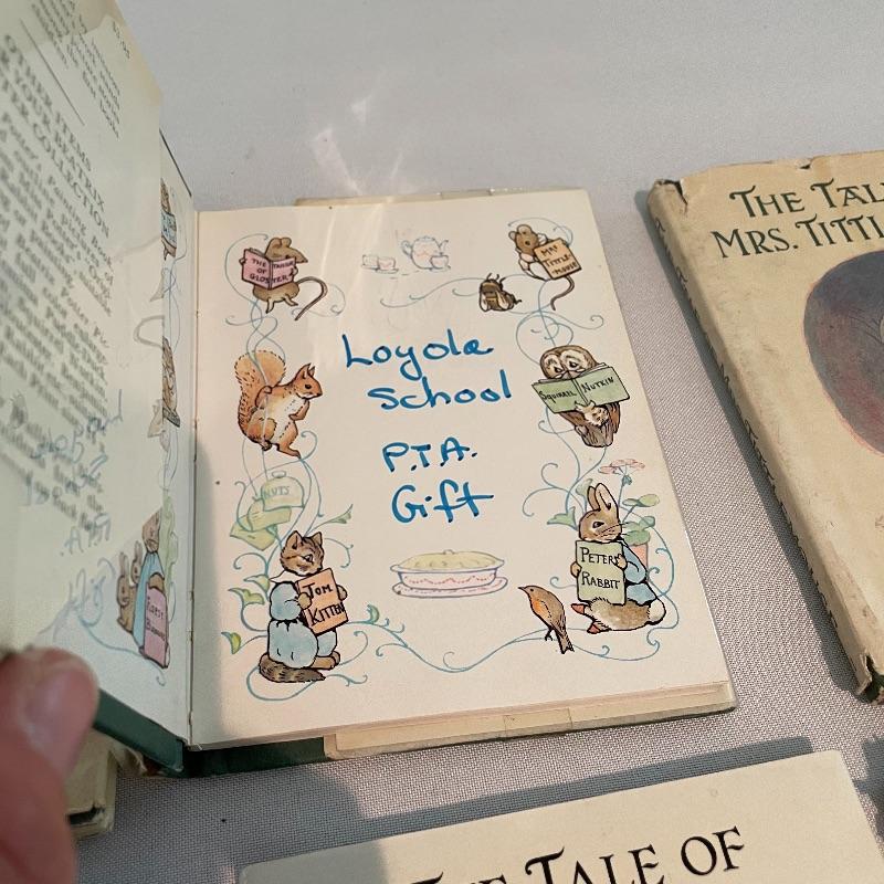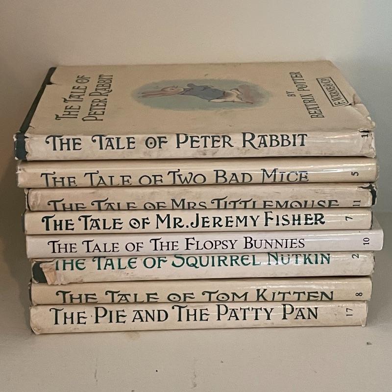 Gathered over the years, we’ve found a collection of eight wonderful stories by Beatrix Potter. Remember your childhood or build memories in the little ones around you. Books are all 4.25” x 5.5” and come in a variety of conditions. See images. Lot also features a limited edition “The Tale of Peter Rabbit, Year of the Child stamp. This stamp is double covered by glass in a small metal frame. Lot also includes a vintage 8” baby bowl and spoon. Shipping available.