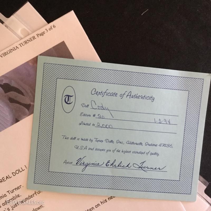 Cody is 26” tall vinyl limited edition doll #20 of 2000. He is a Virginia Turner Doll that comes in original box with Certificate of Authenticity. See photos for details. Doll ships from Columbus, North Carolina or local pick up.