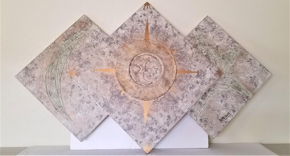 Three piece oil on canvas decorative piece. Measures 56" across - good condition.