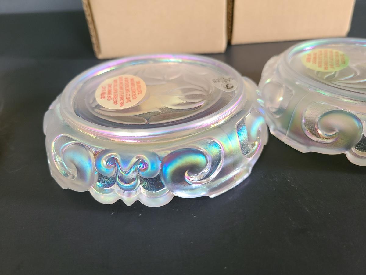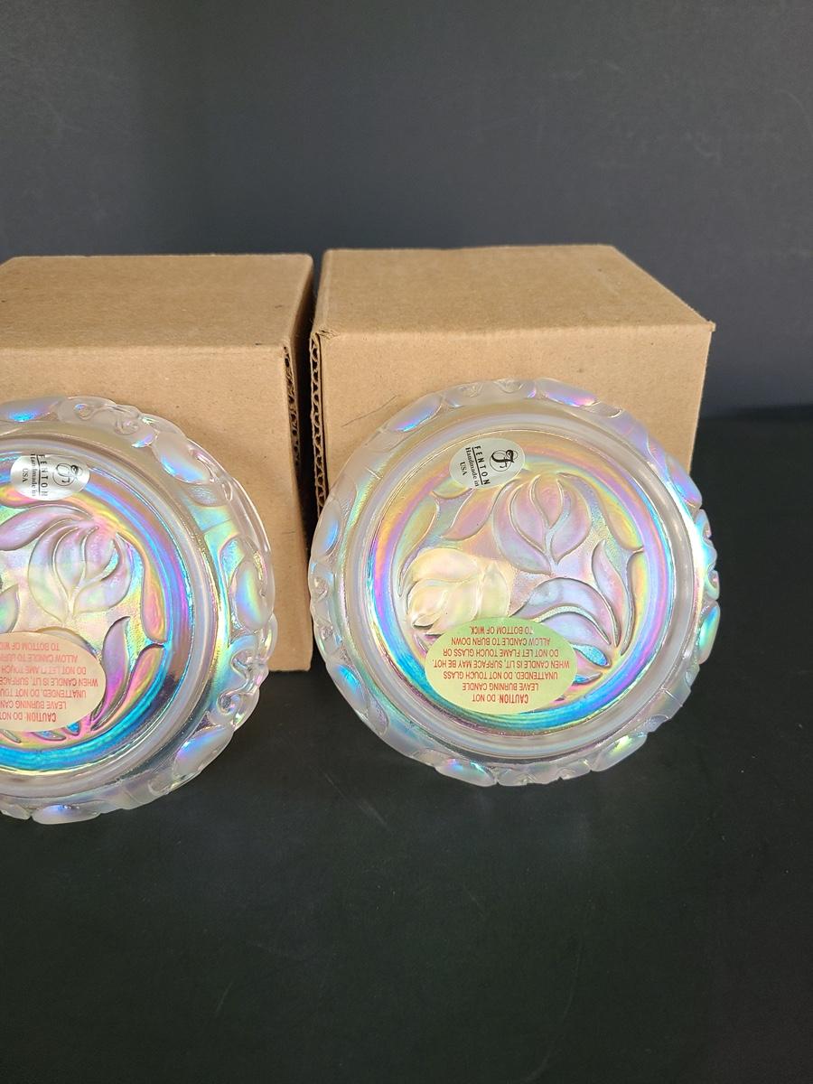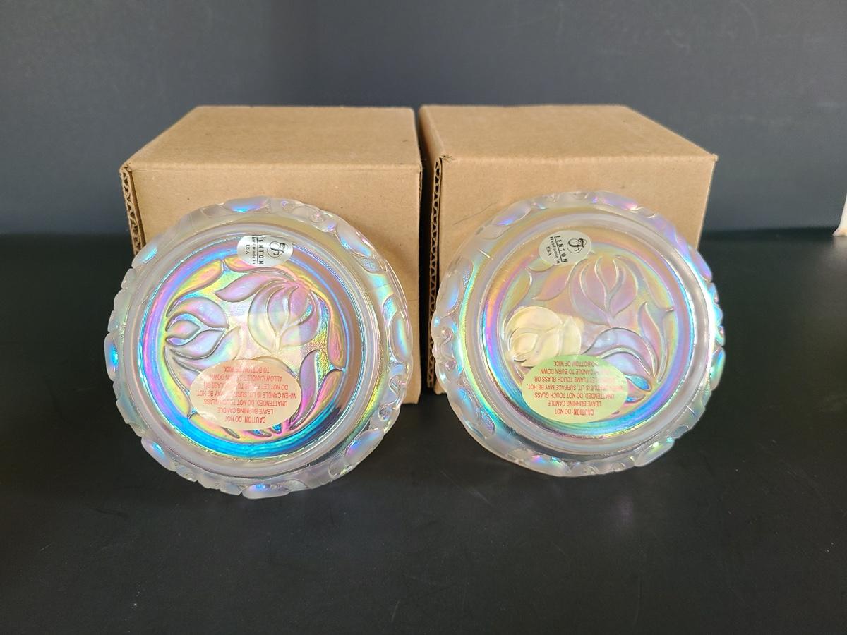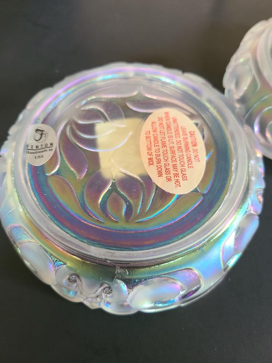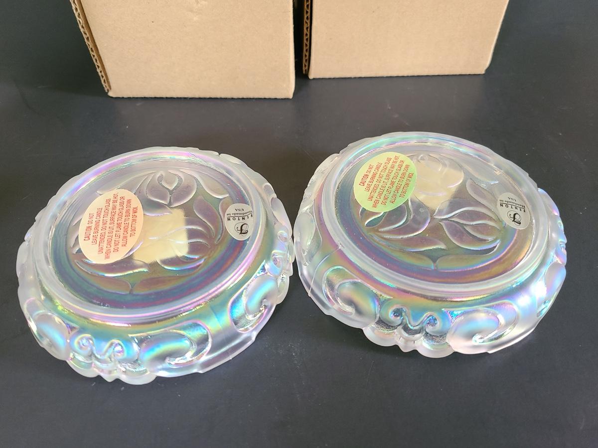 Lot 150: Fenton Iridescent Floral Candle Holders