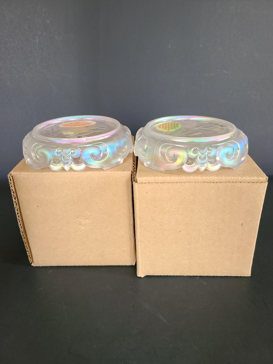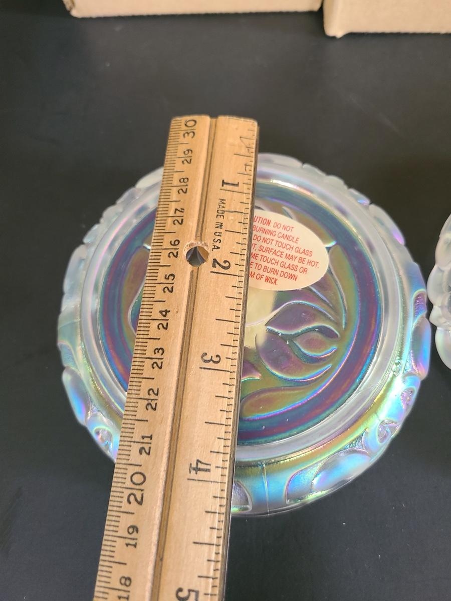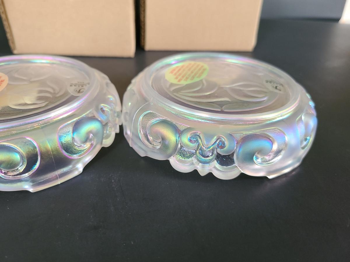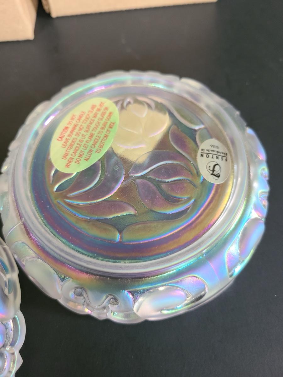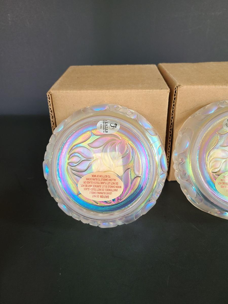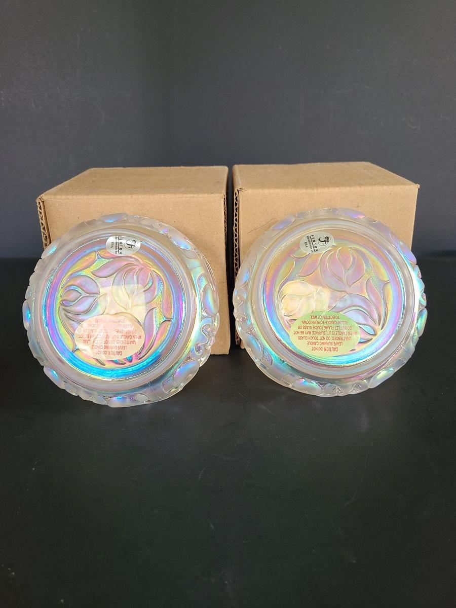 Lot 150: Fenton Iridescent Floral Candle Holders