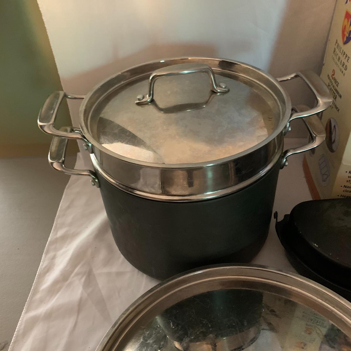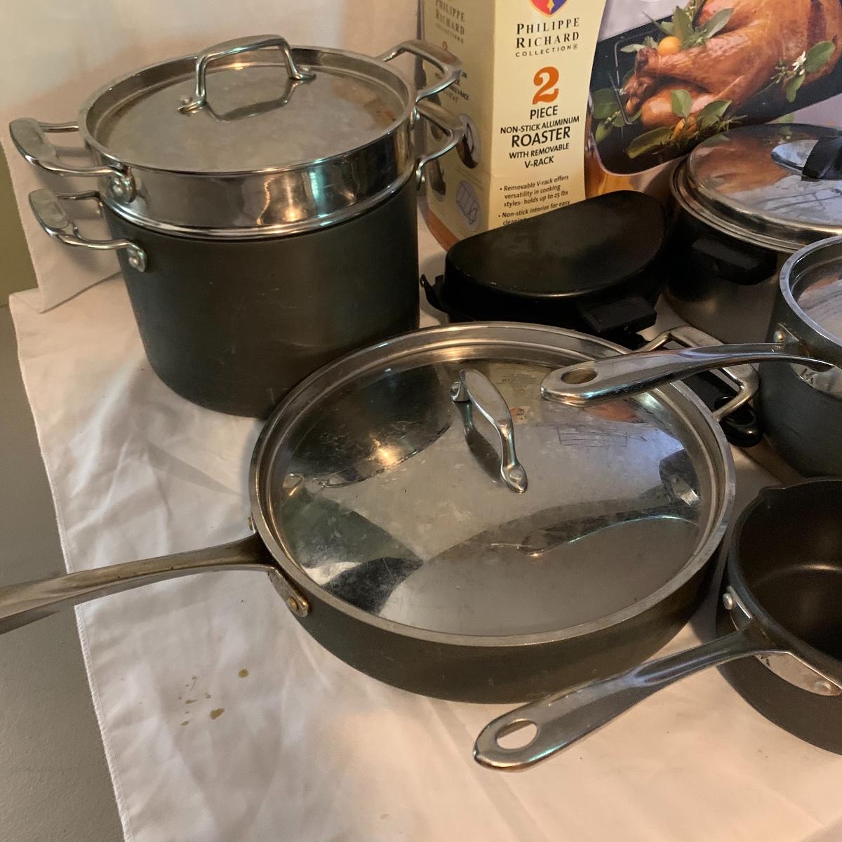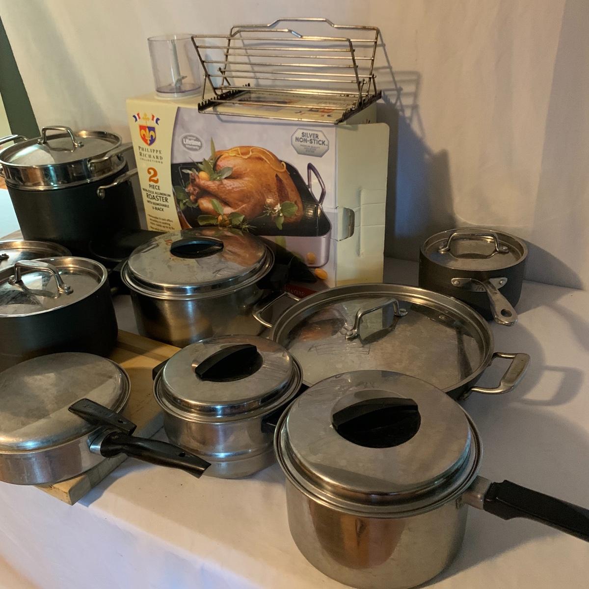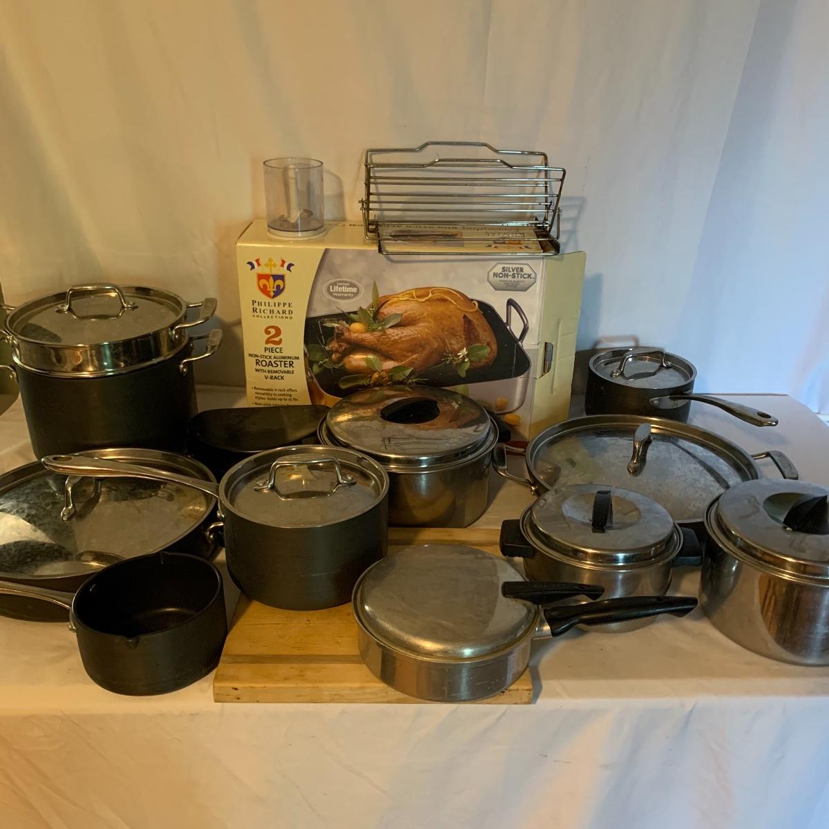 Here’s one for all you cooks out there! This lot features numerous Flintware pots and pans. Included is a pasta boiler/steamer combo, a waffle iron, two frying pans, six pots, an adjustable cooking rack, a cutting board and more. This collection could stand a good cleaning at which point it will be ready for service. Local pickup only.