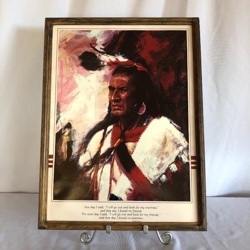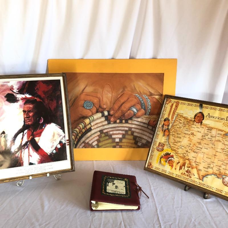 Learn all about the Indian tribes with this informative framed poster of American Tribes. Also includes what appears to be an unframed signed and matted pastel by Billie Brown, Indian territory cookbook and a framed Indian poster with quote.
