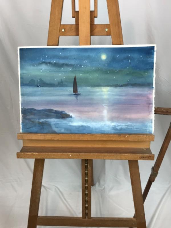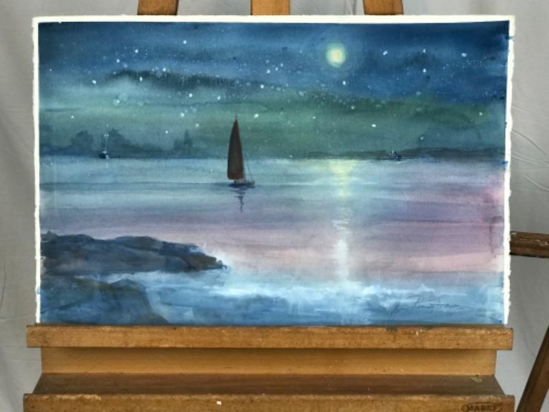 Jean Ranney Smith signed original watercolor painting “Nighttime Sail” measures 22”x14”