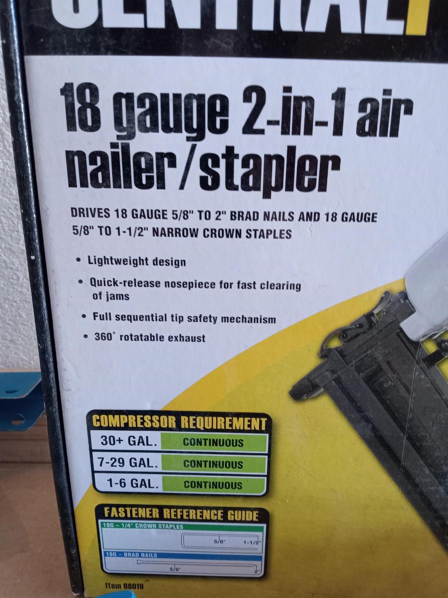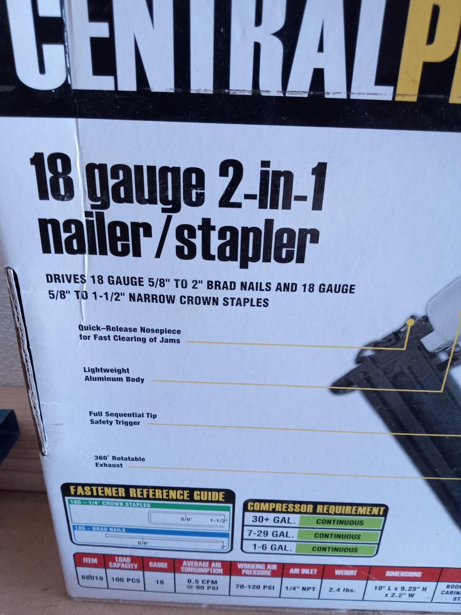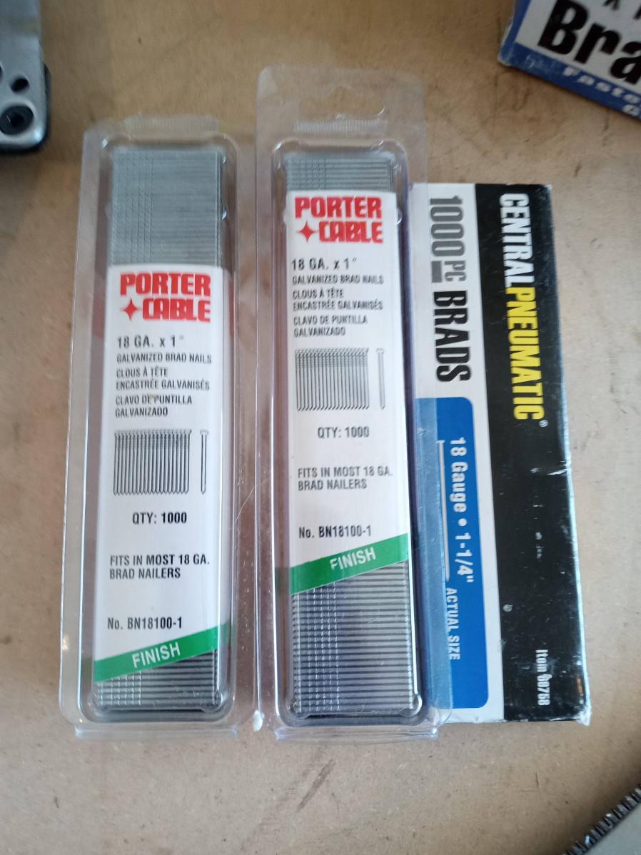 LOT 150 NEW PNEUMATIC NAILER/STAPLER, BRADS AND SOME HAND TOOLS