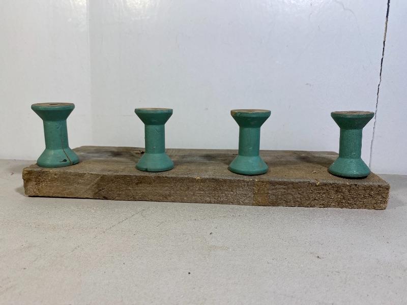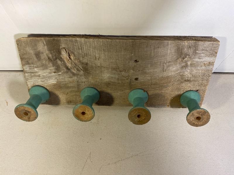 Lot# 150 s Shabby Chic Coat Hat Rack Wood Thread Spool Hooks